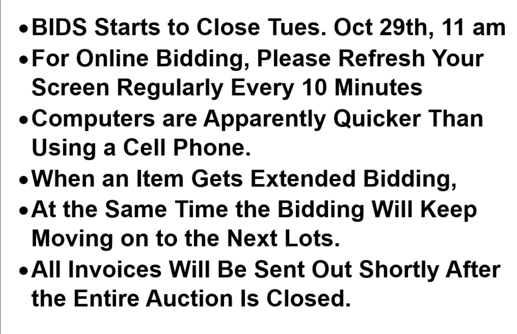 BIDS Starts to Close Tues. Oct 29th, 11 am