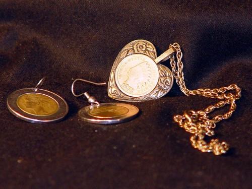 INDIAN HEAD CENT NECKLACE AND ITALIAN COIN EARRINGS