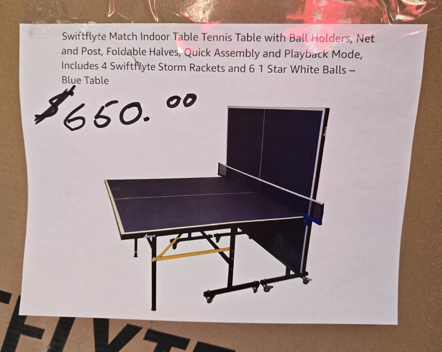 SOLD ON SELLERS APPROVAL, INC. NET AND POSTS, FOLDABLE HALVES, 4 SWIFTFLYTE STORM RACKETS, SIX 1 STAR WHITE BALLS, QUICK ASSEMBLY AND PLAYBACK MODE.