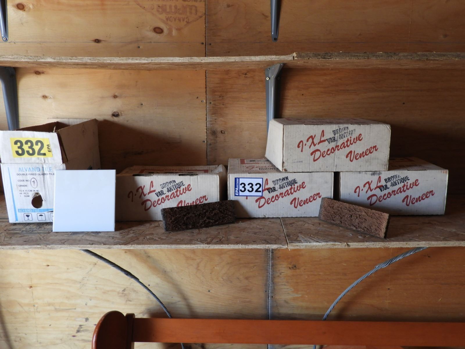 IXL Burned Clay brick fronts (3) boxes with 36 bricks, (1) box with 18 bricks, (24) 15cm white tiles