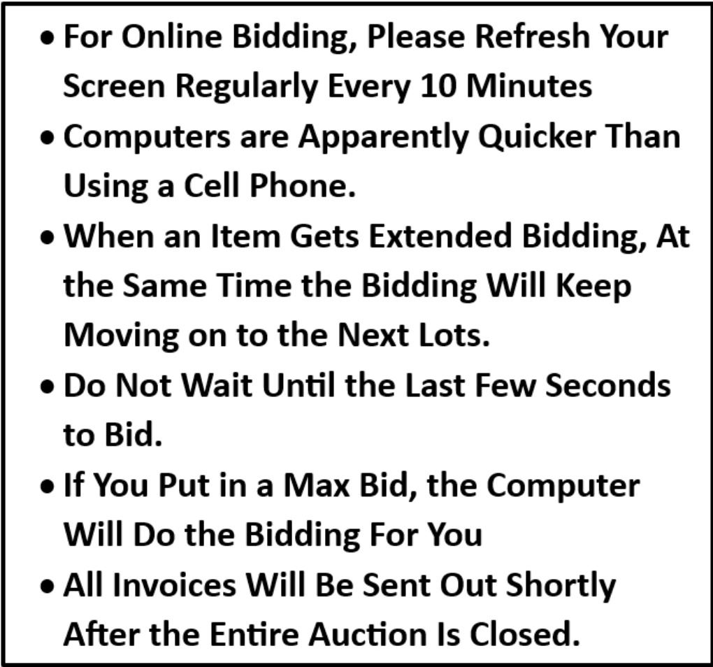 All Invoices Will Be Sent Out Shortly After the Entire Auction Is Closed.