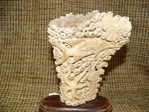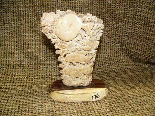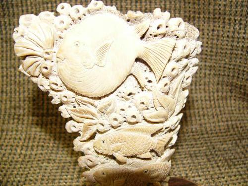 Imported tropical fish of antler on wood base, 6" tall 4.5" wide (33)
