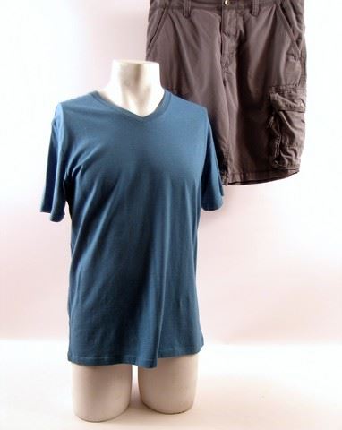 Derek (Cam Gigandet) screen worn, light blue v-neck 'Old Navy' t-shirt, (size M) and grey cargo 'Old Navy' shorts. (size 32).