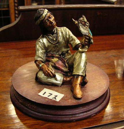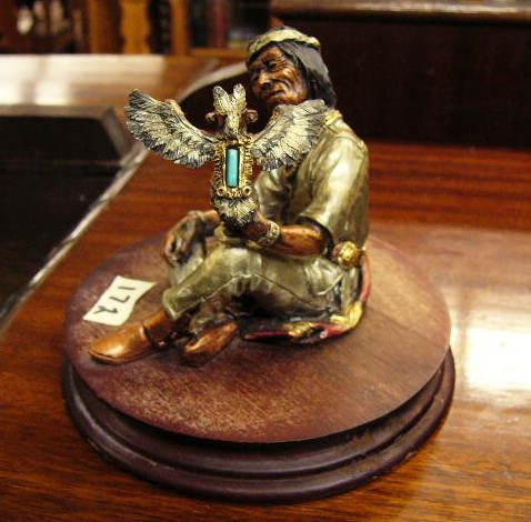 Indian With an Eagle Dancer on Knee, Mixed Media Cast Metal (129)