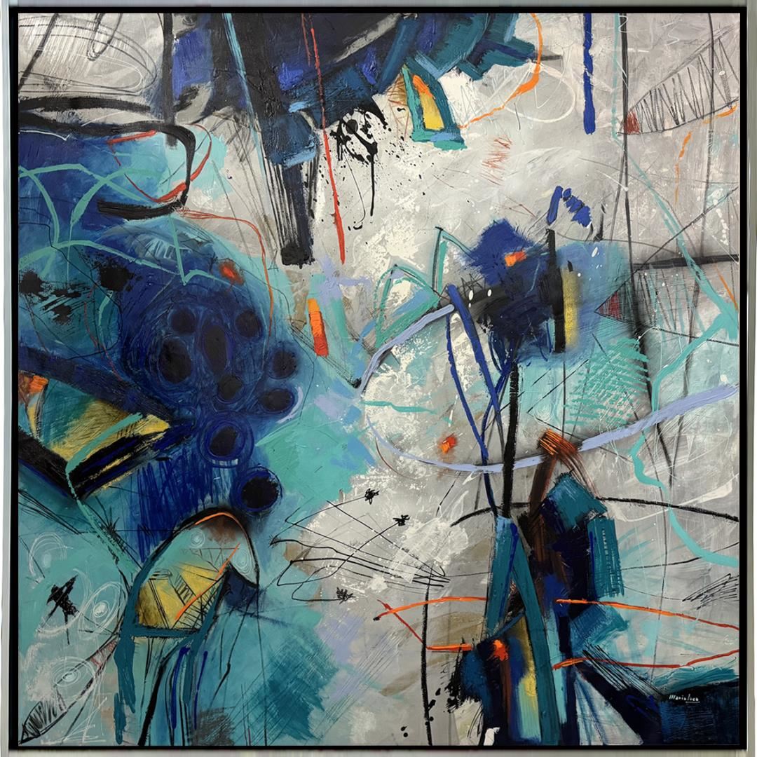 Stunning original acrylic on canvas. Hand signed by artist. This artwork comes beautifully framed and ready to hang. Art size 55x55" framed size 57x57"