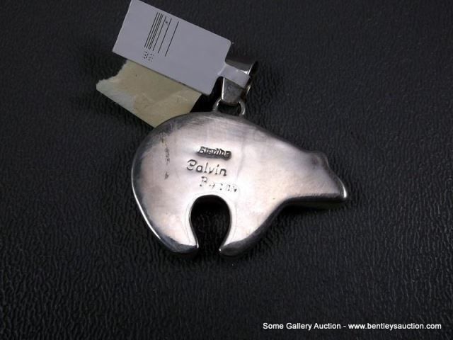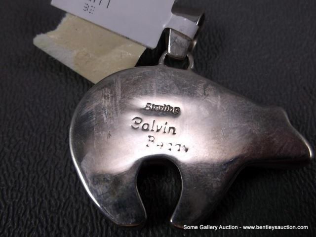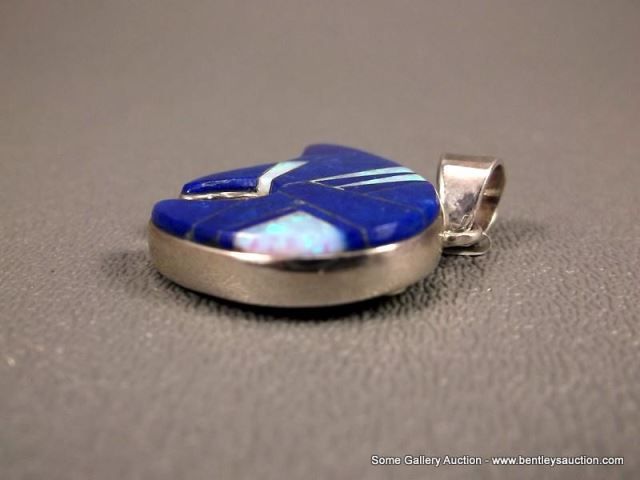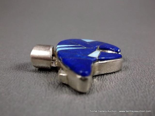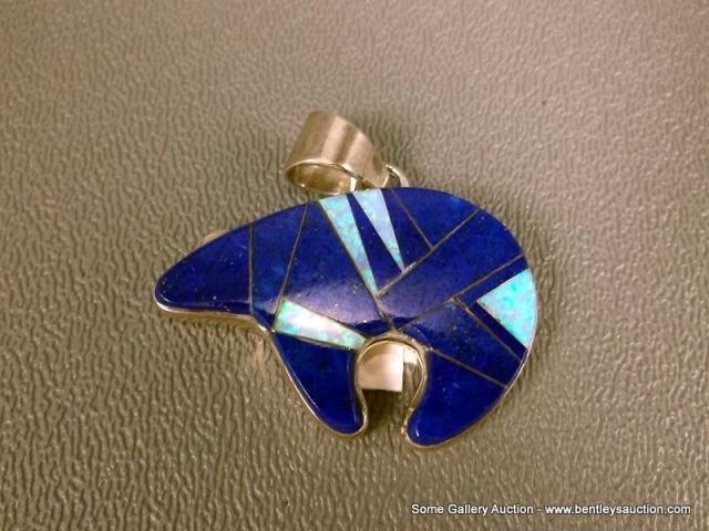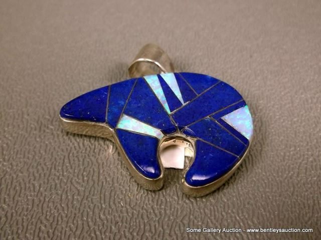Inlaid Blue Stone and Opal Bear Pendant-Marked Calvin Begay Weight: 13.1 Grams Retail: $240.00