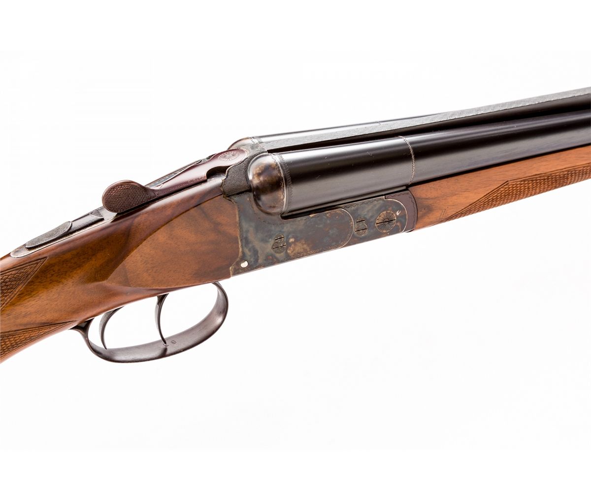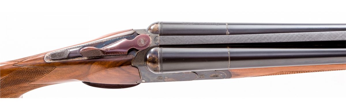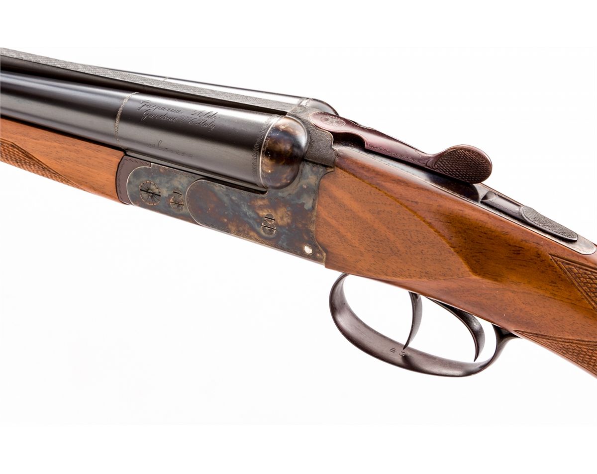 Italian Double Rifle, by Gaspariui Aldo, #19283, 7x65R cal., 23-1/2'' blue barrels, case hardened frame, checkered cheekpiece walnut stock and forend, with double triggers, ramp front and rear sights, and factory black rubber butt pad. Condition is excellent showing only light marks from handling. Est.: $2,500-$4,000. (Modern) (Ernest A. Bryant III estate)
