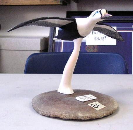 Ivory King Eider in flight by Larry Mayac - 21 Feb 2000 - Ivory 8" tall, 12.5" wing tip to tip (3)