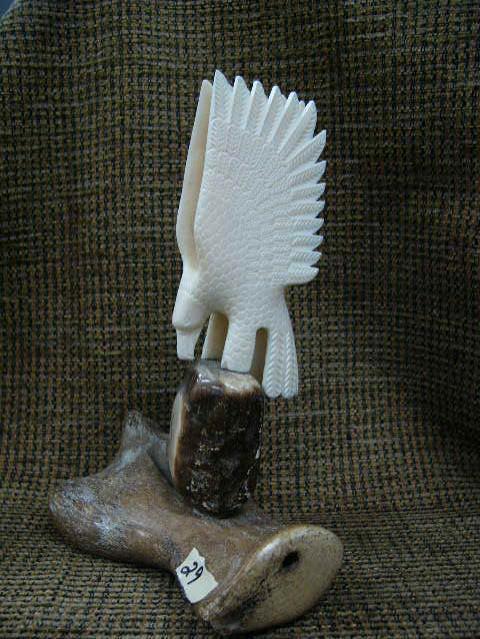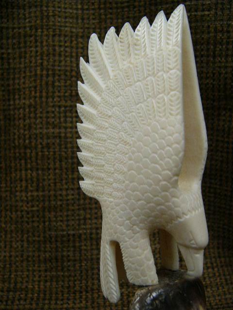 Ivory eagle on bone or antler base 8" tall - may be imported (33)