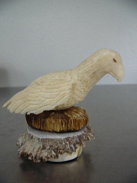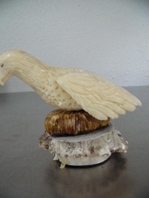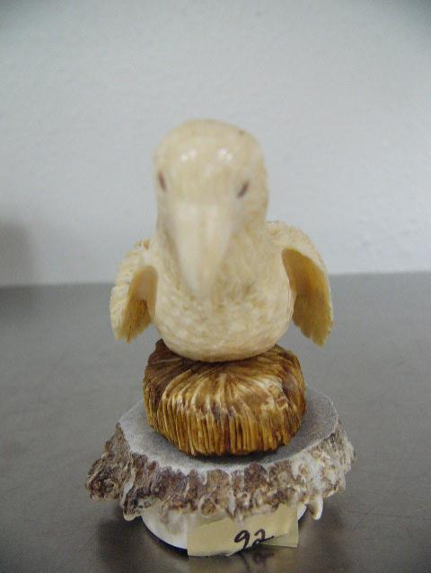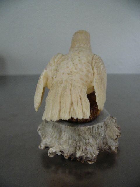Ivory owl on ivory with antler base- 3-1/2" tall and 4-1/2" long ()