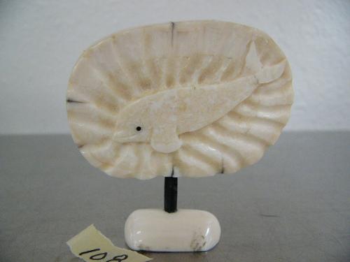 Ivory relief carving of whale signed by Alan Slwooko from Diomede- 393- 3" high ()