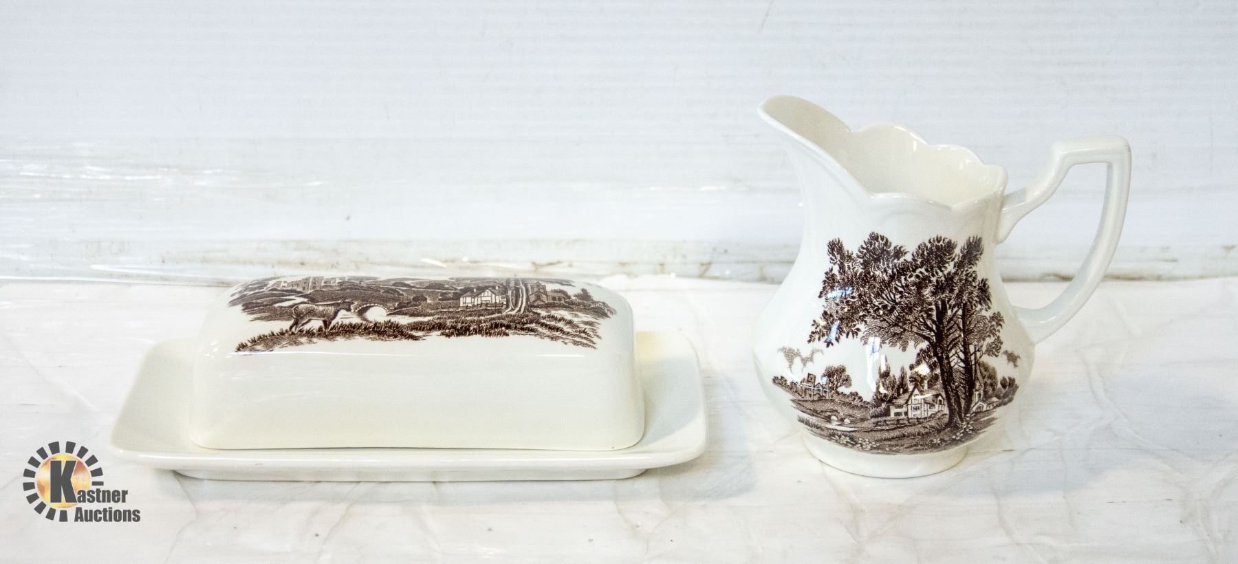 J&G MEAKIN BUTTER DISH AND CREAM JUG