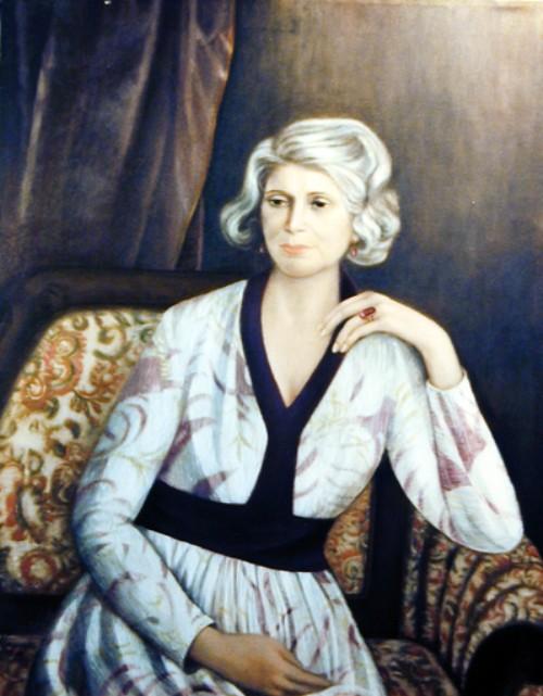 J.K. HANSEGGER 020 O/C PORTRAIT SEATED LADY WITH AMETHIST RING 24"X30"