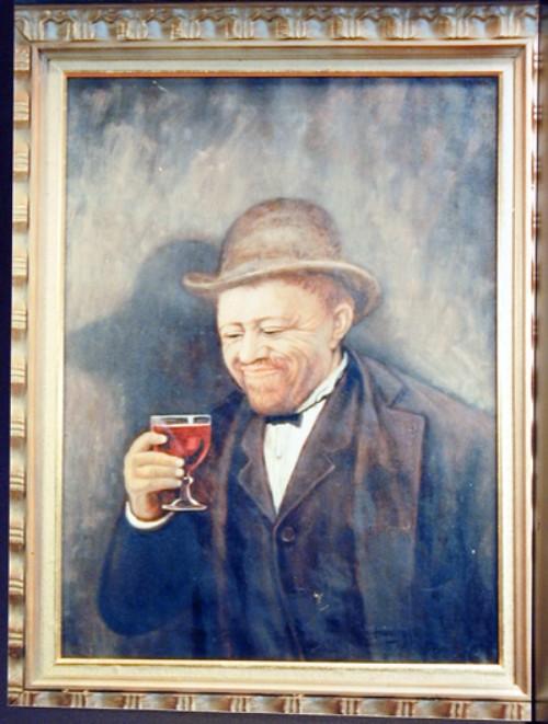 J.K. HANSEGGER 077 O/C MAN W/ WINE GLASS 18"X24" (FRAMED)