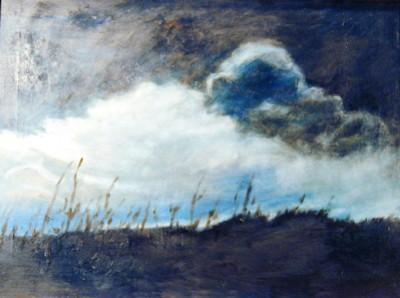 J.K. HANSEGGER 226 O/C STORMY SKIES & FIELD 24"X18"
