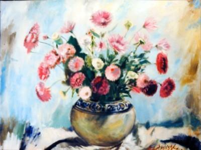 J.K. HANSEGGER 341 FLOWERS IN PORCELAIN BOWL O/C 30"X24"