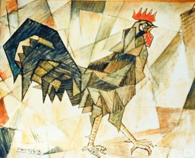 J.K. HANSEGGER 512 CUBIST ROOSTER 19.5"X15.5" (FRAMED)