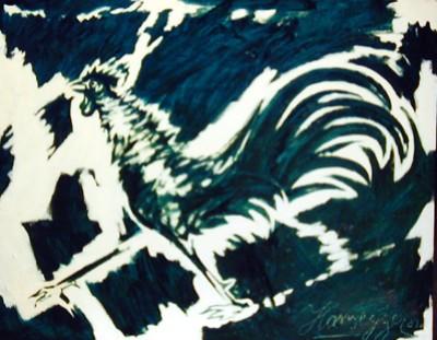 J.K. HANSEGGER 543 O/P GREEN ROOSTER 30"X24"