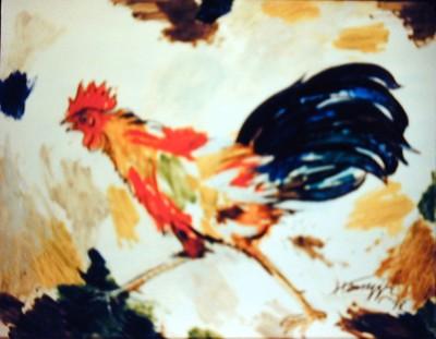 J.K. HANSEGGER 548 O/P MULTI COLORED ROOSTER 28"X22"