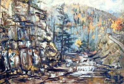 J.K. HANSEGGER 728 O/C AUTUMN SCENE W/ ROCKS & STREAM 40"X30"