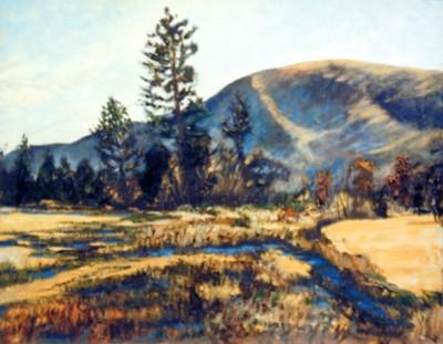 J. K. HANSEGGER 793 O/C STREAM IN MEADOW WITH PINE TREE 30"X24"