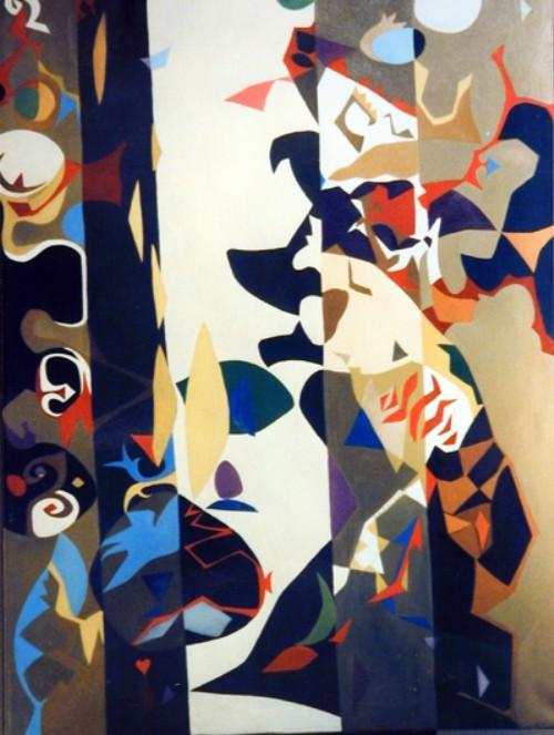 J K HANSEGGER 984 OIL ON CANVAS CUBIST ABSTRACTION WITH PARALLELS 30"X40"
