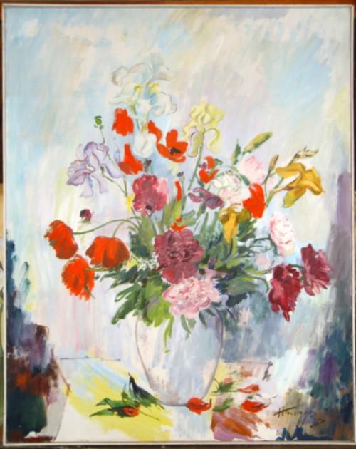 J.K. HANSEGGER O/C FLOWERS IN GLASS VASE 40"X50 (FRAMED)