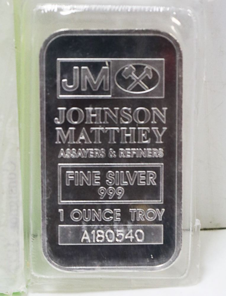 J.M. 1 TROY OUNCE .999 SILVER BAR