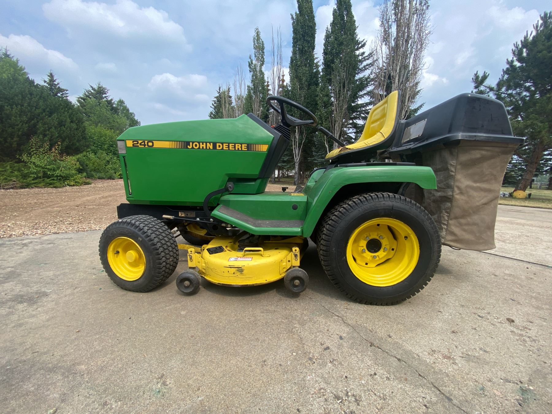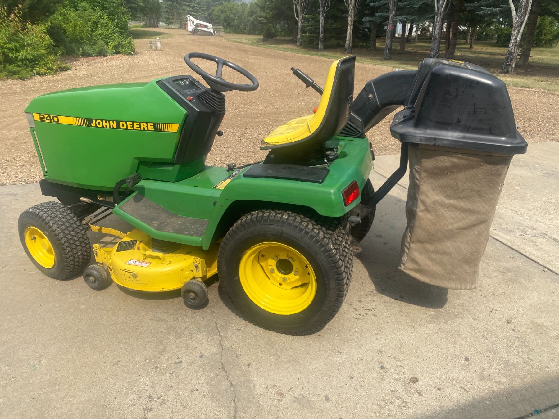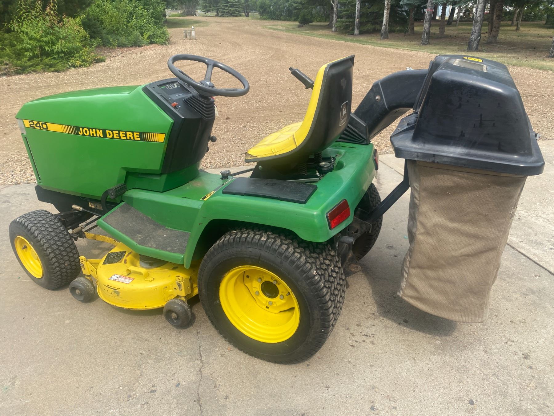 JD 240 Riding Lawn tractor 42 in Fc420v gas motor,6 speed C/w rear bagger, running order