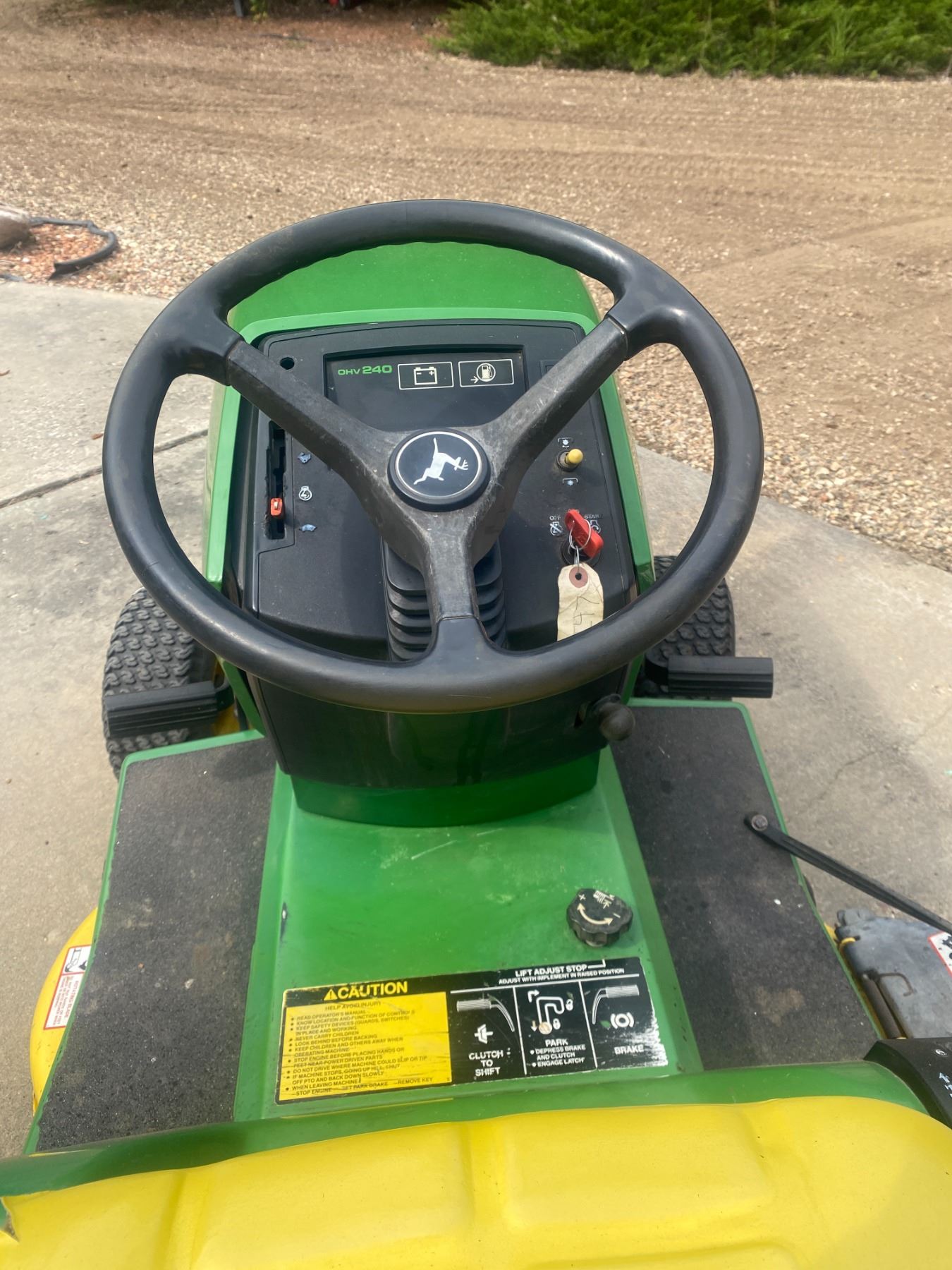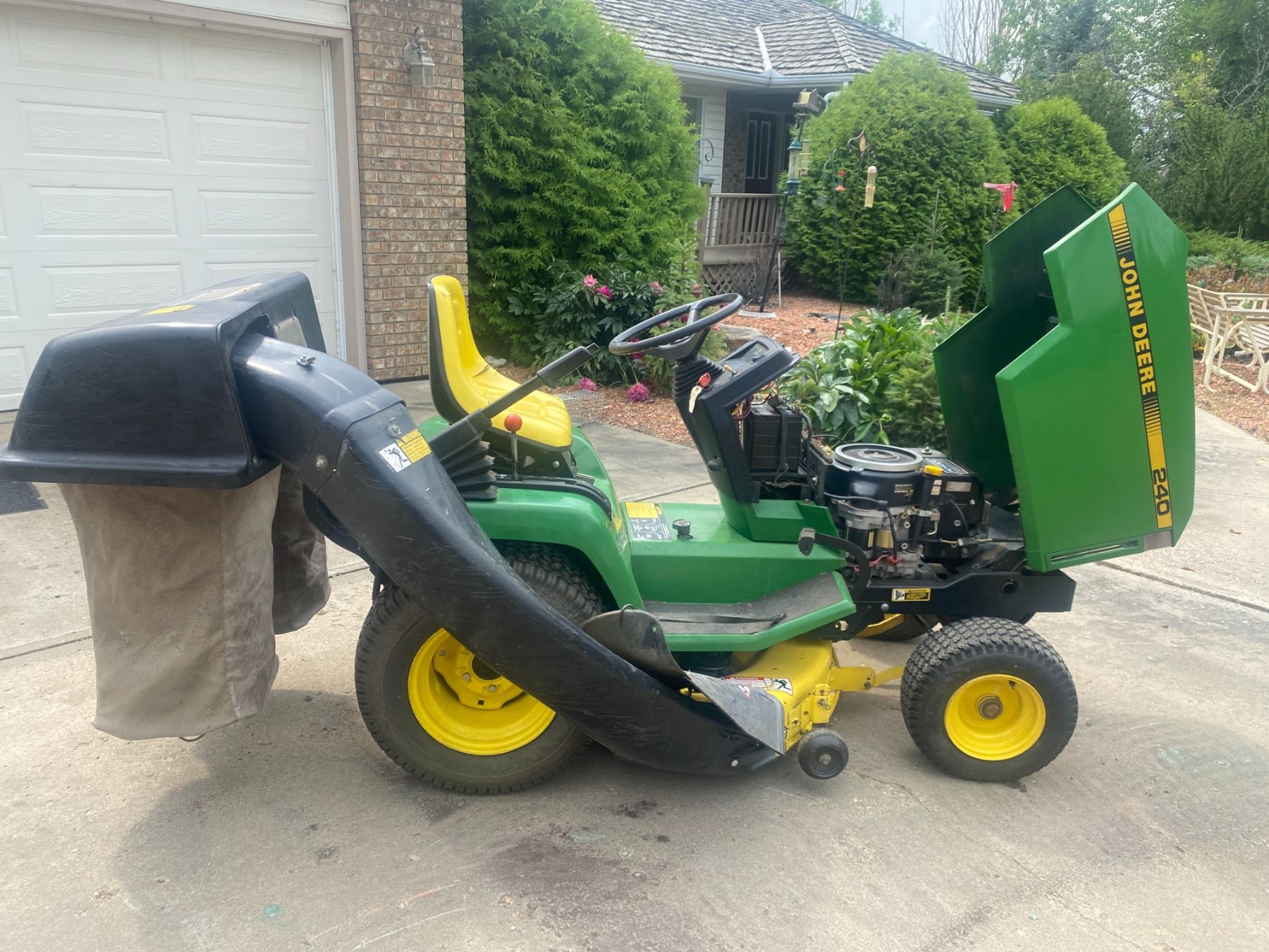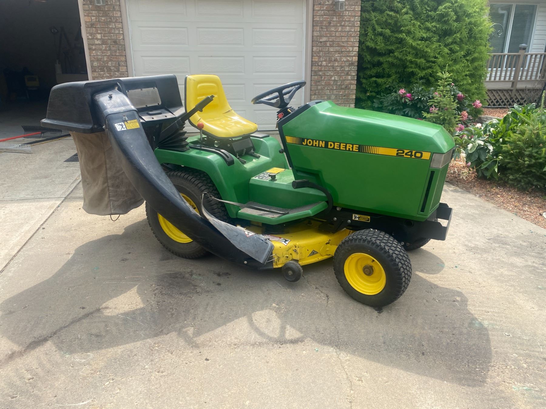 JD 240 Riding Lawn tractor 42 in Fc420v gas motor,6 speed C/w rear bagger, running order