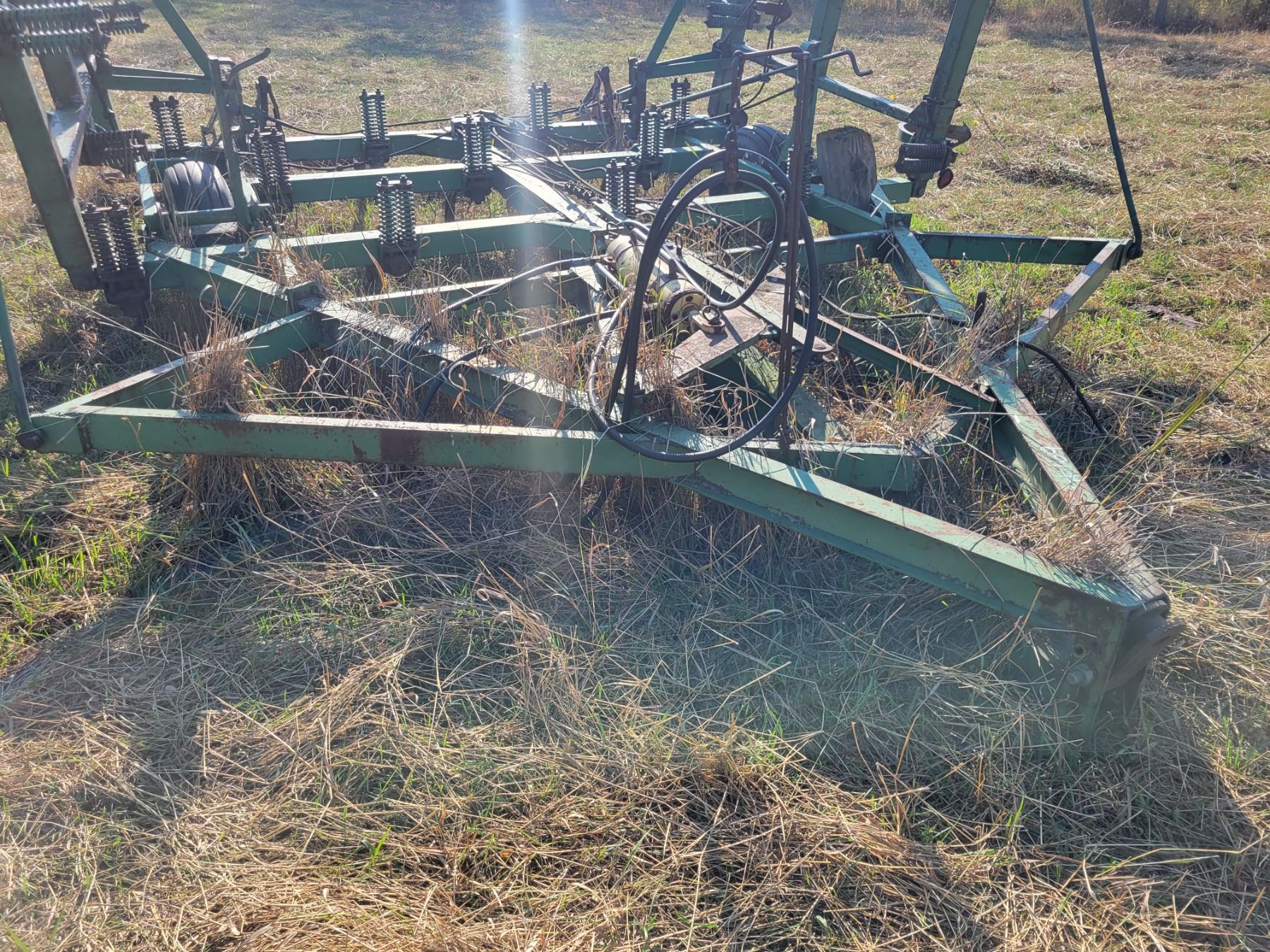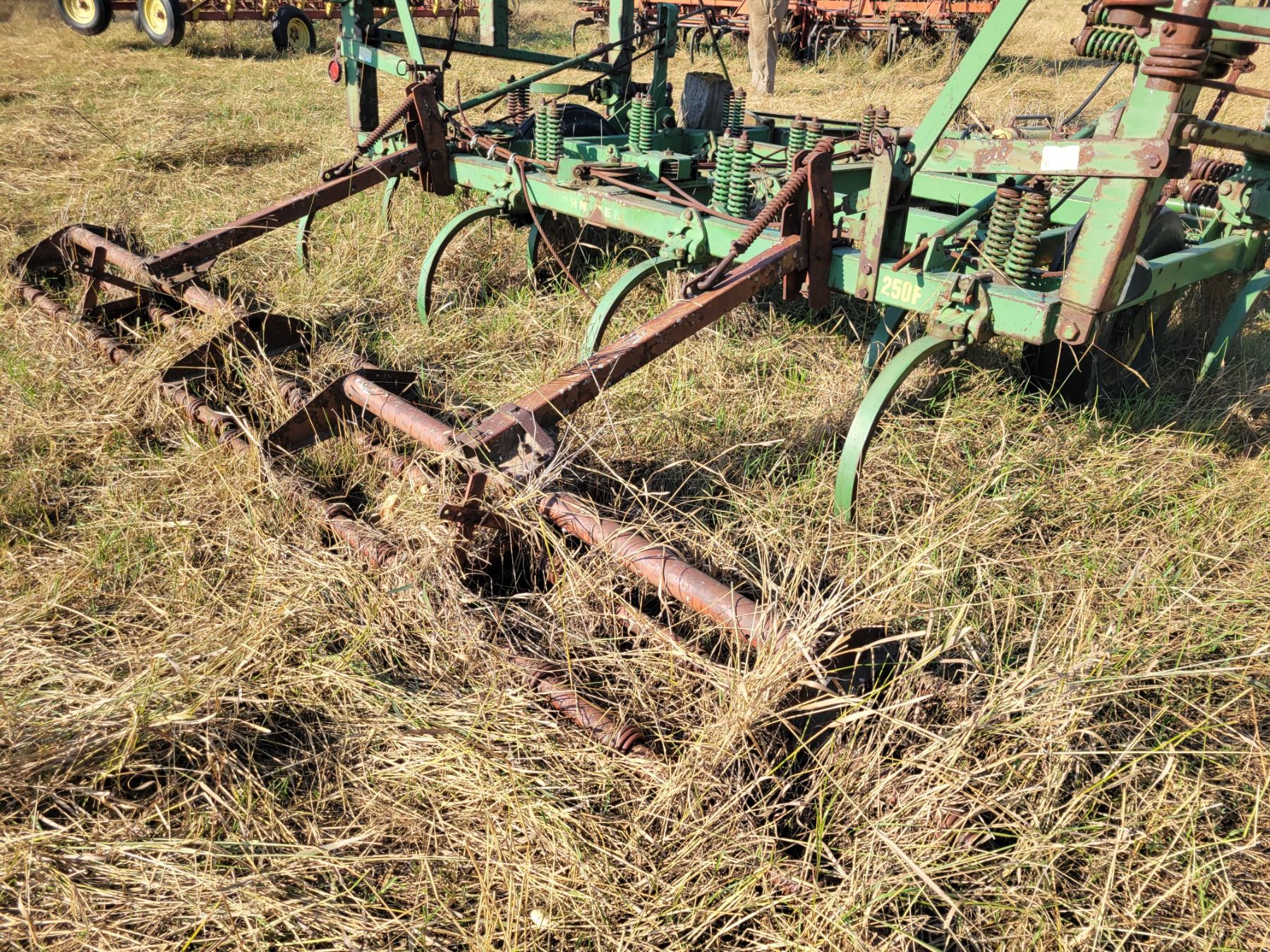 JD 250F Chisel plow, approx. 28 ft, mtd noble harrows
