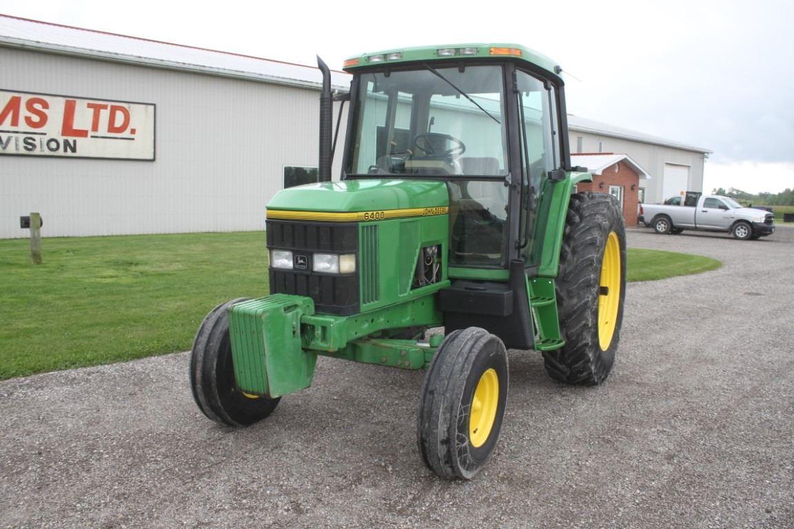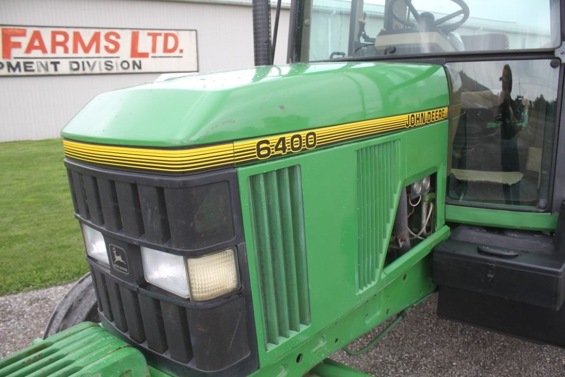 JD 6400 2wd tractor, cab, air, power quad, 16.9x38, R&P axle, 2 remotes, 6 front weights, 4031 hours