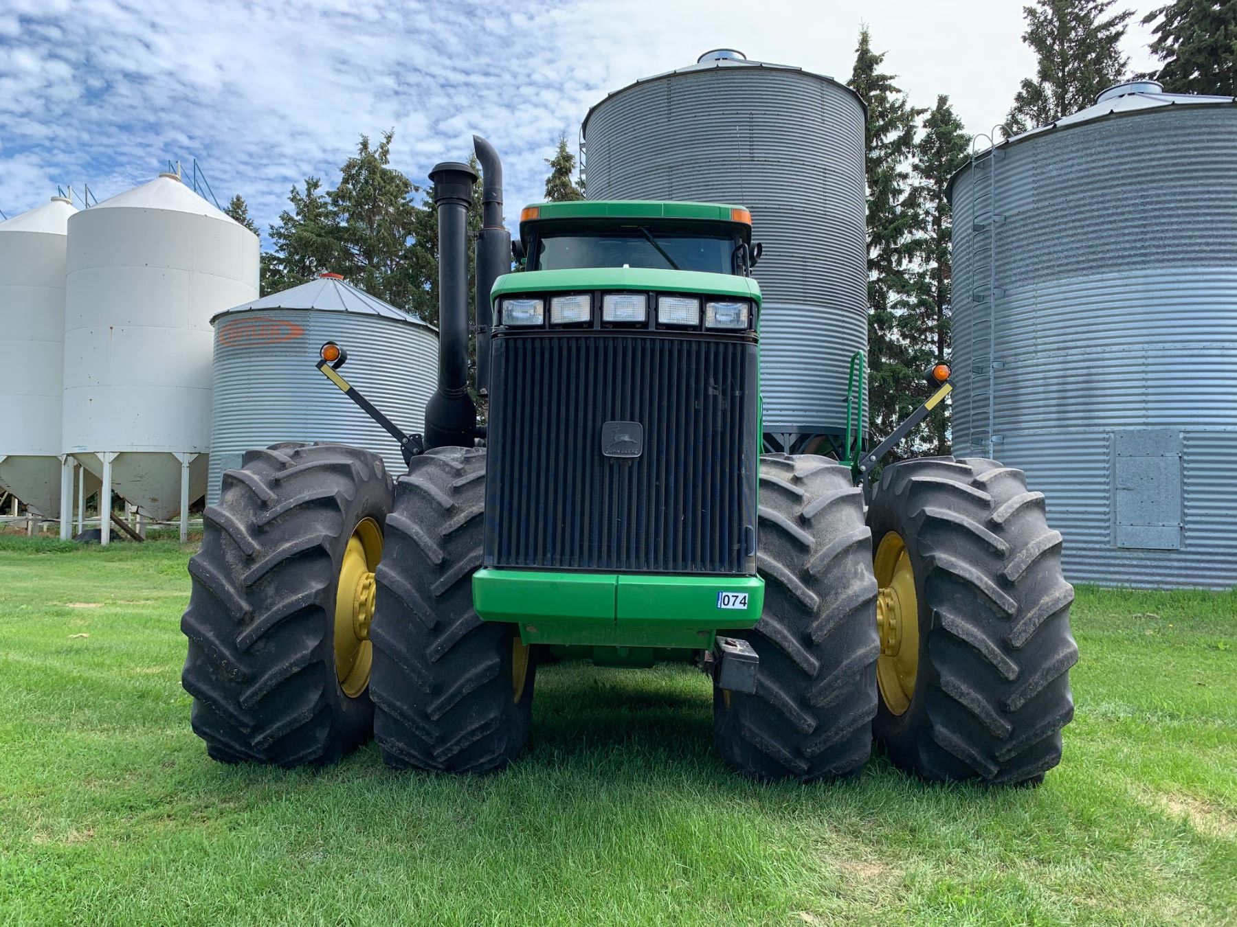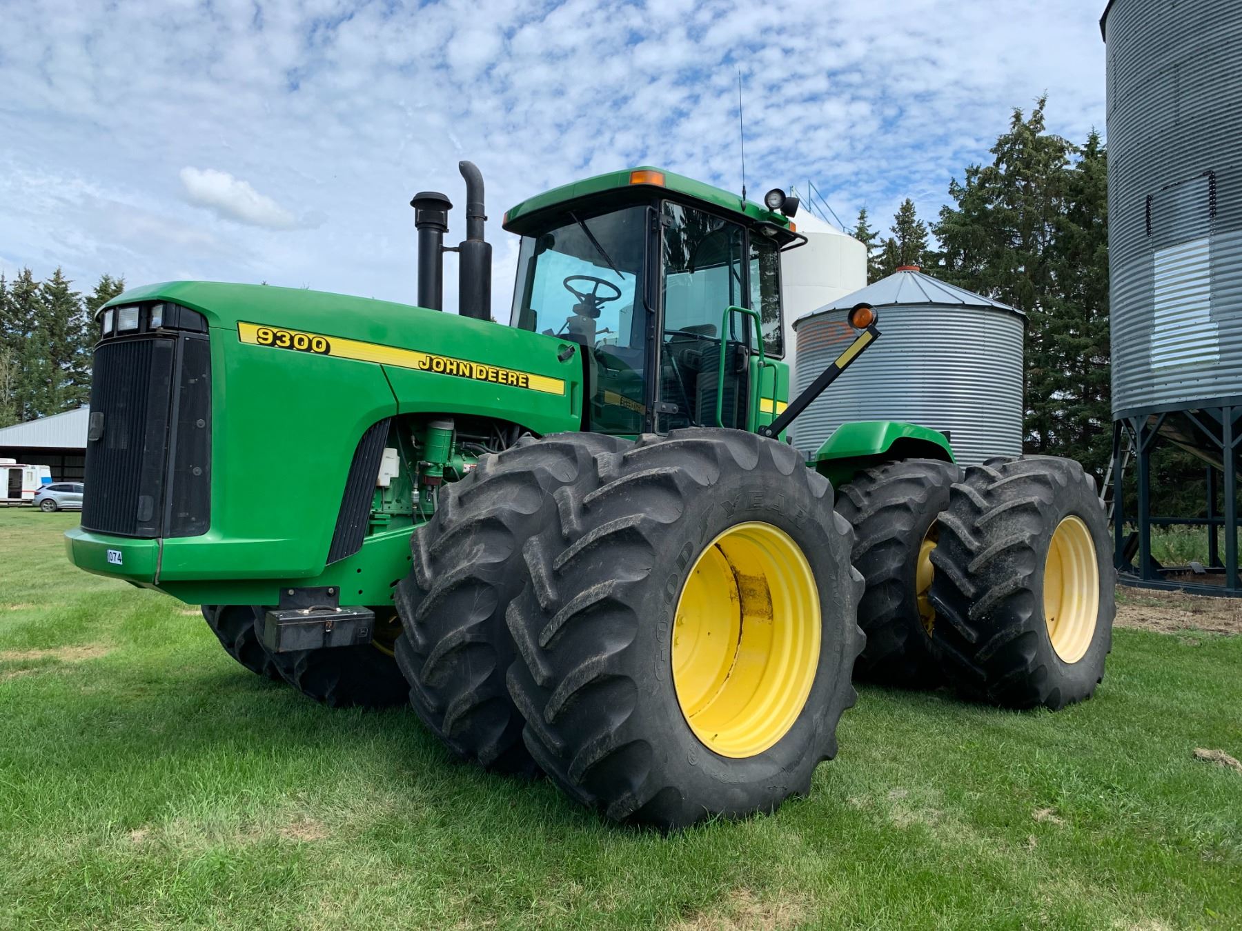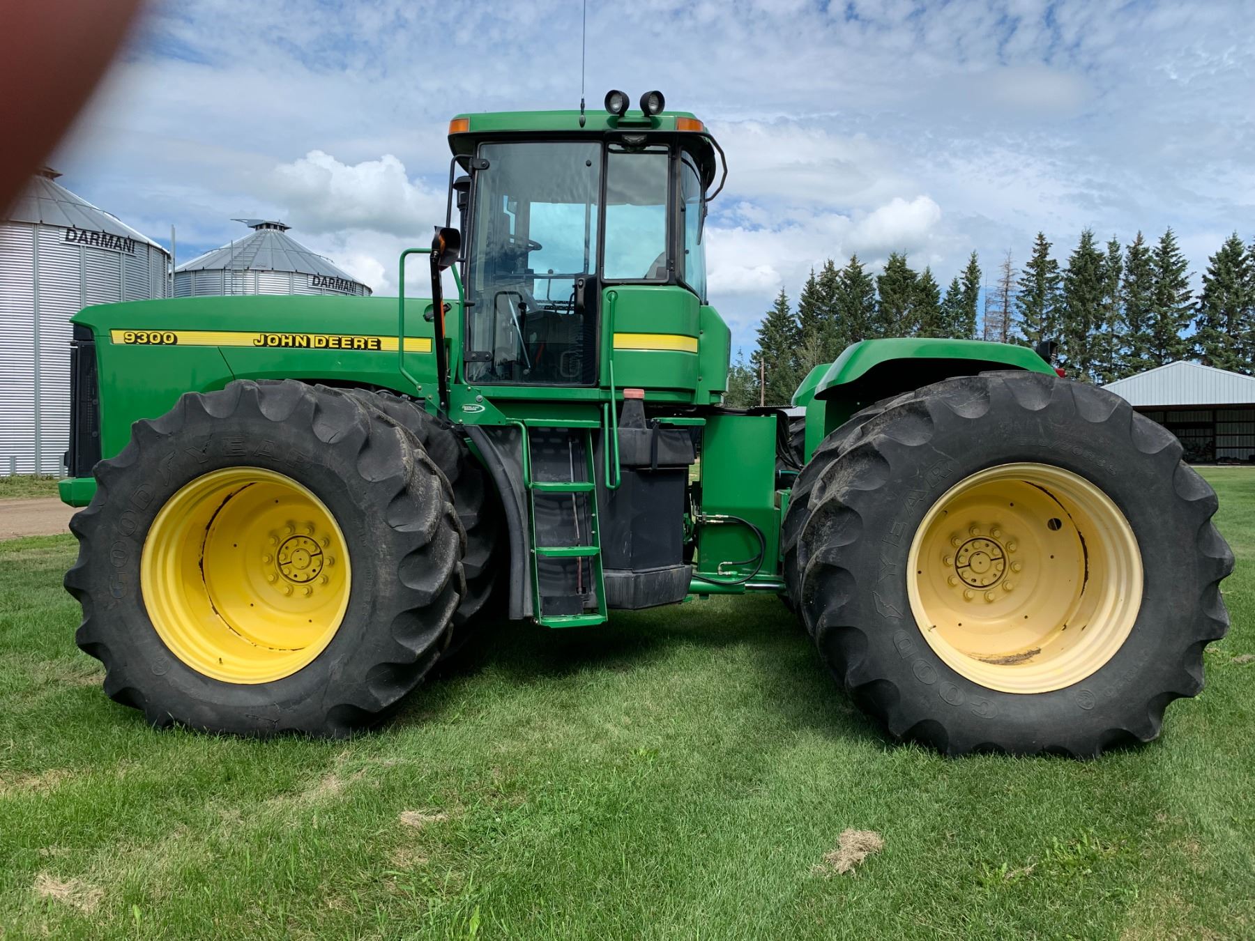 JD 9300 4WD TRACTOR, 6,077 hrs, 24 spd, 4 hyds, 710/70R38 rubber, plumbed for air seeder, upgraded water pump, SN. RW93000H030407