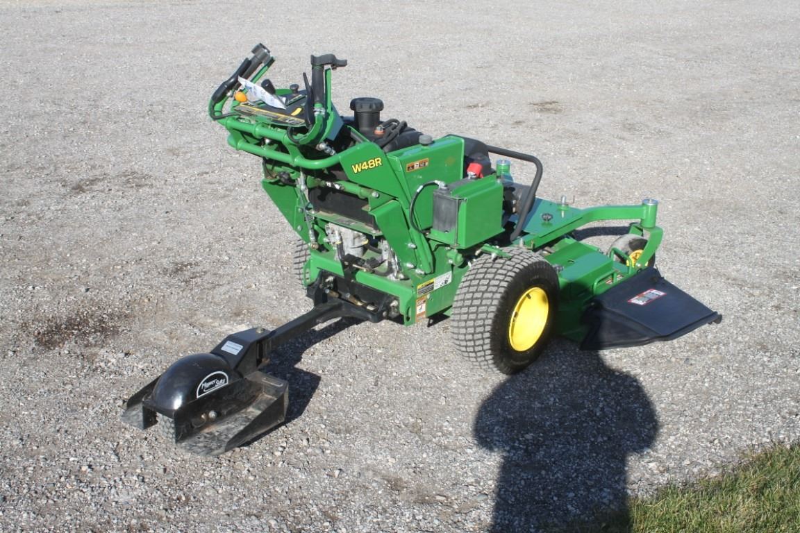 JD W48R walk behind commercial mower, 48" deck, mulching kit, single wheel ride on mower sulky, 39 h