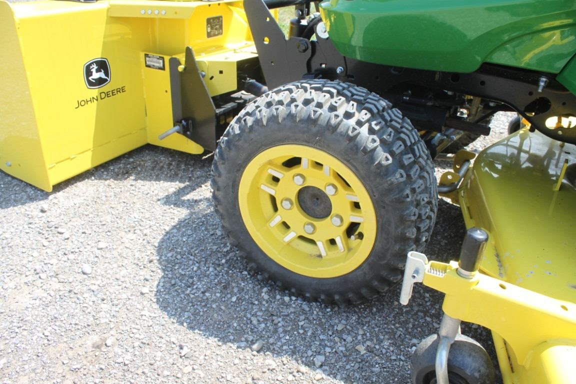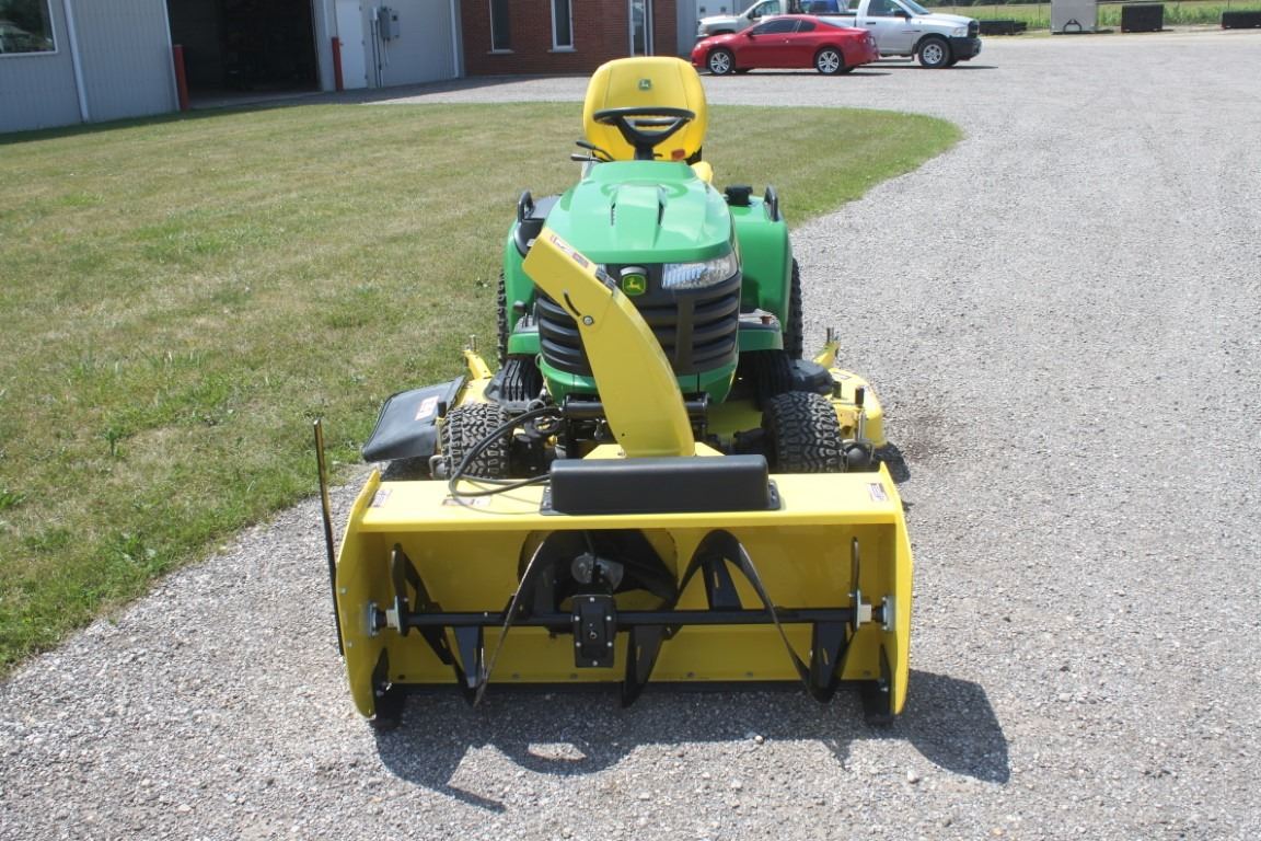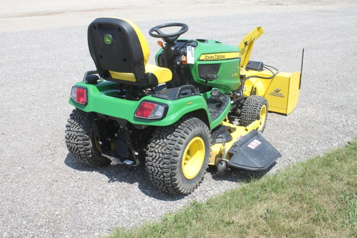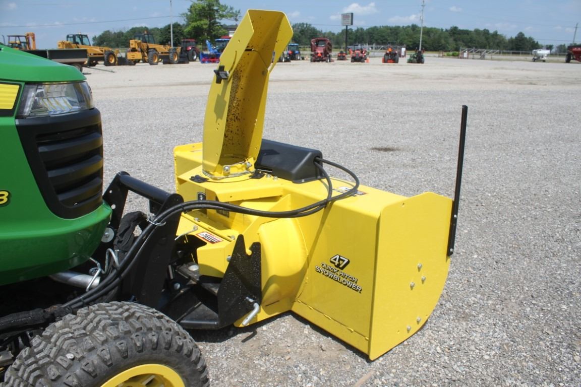 JD X738 4wd lawn tractor, JD high capacity 60" Drive Over deck, deluxe seat, JD front mount 47" snowblower, shaft drive, 31 hours, 2020 model