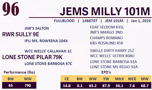 JEMS MILLY 101M - HORNED. 100% FULL FLECKVIEH. - Exposed from March 10 - June 1 to JNR Quote beginning of January calving.