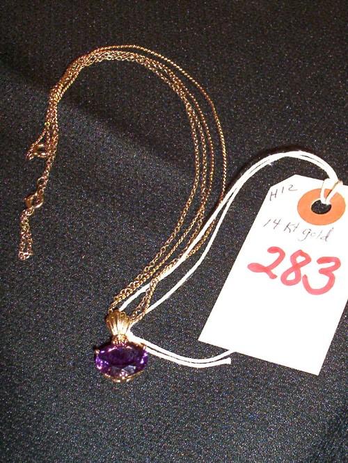 AMETHYST PENDENT AND 2 VINTAGE CHAINS