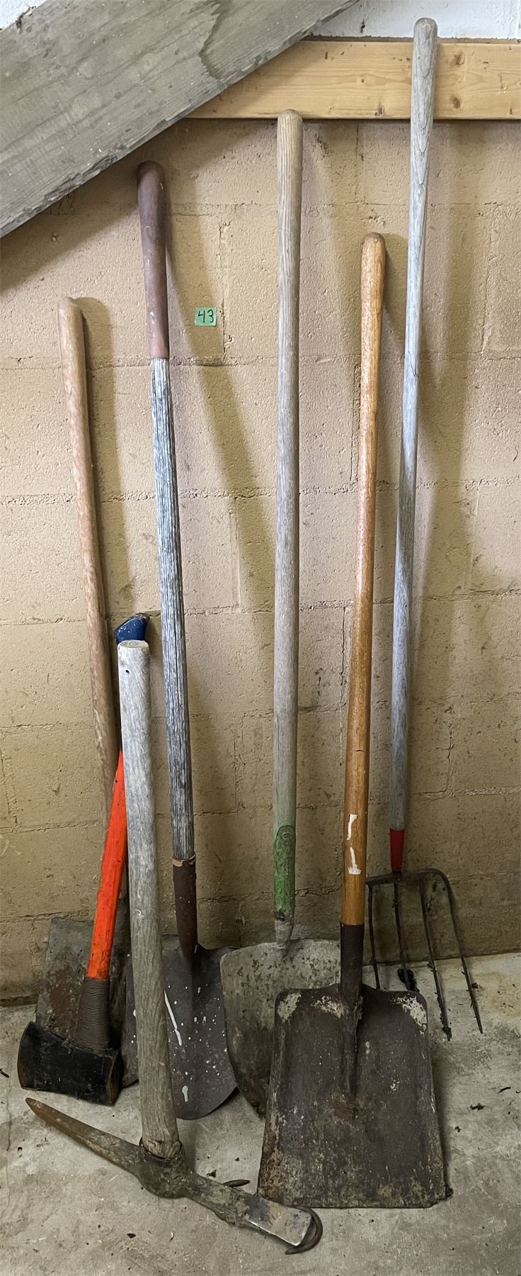 INCLUDES: SHOVELS, FORK, AXE, ETC