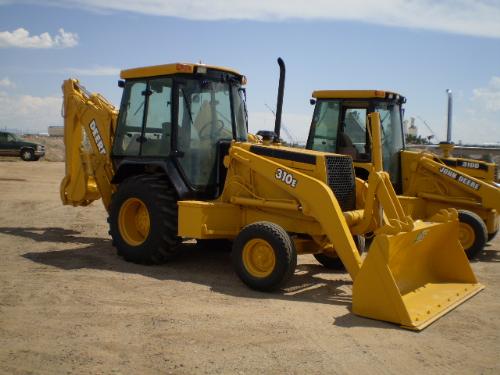 1997 JOHN DEERE 310E LOADER BACKHOE, s/n T0310EX835304: GP BUCKET, CAB, 18in. BACKHOE BUCKET, 11L16SL FRONT TIRES, 16.9X24 REAR TIRES