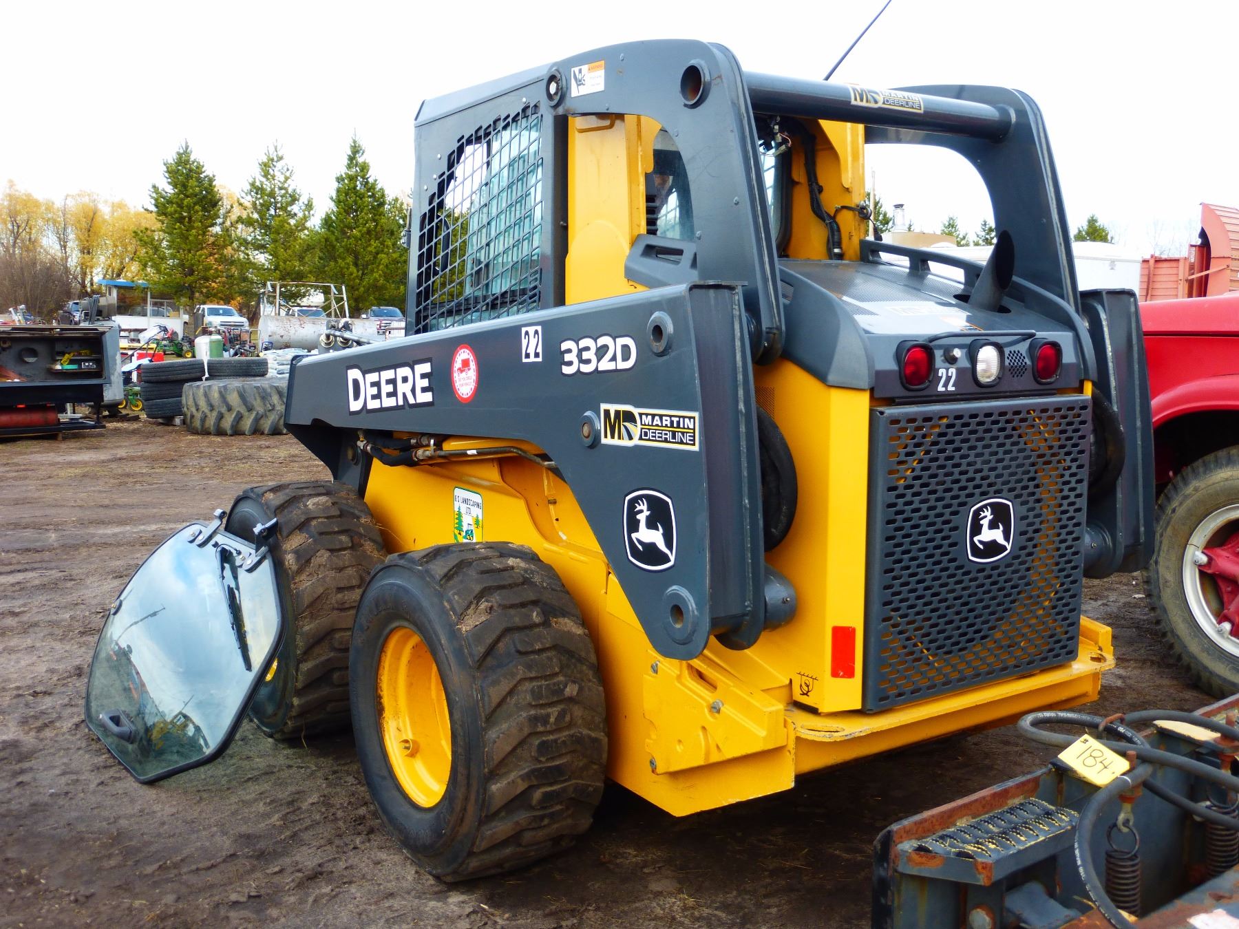 C/W JOHN DERE 84" SMOOTH BUCKET; WIND SHIELD; UNIT 22; 2 SPEED; 184 HOURS; SN #1T0332DKHCD232887