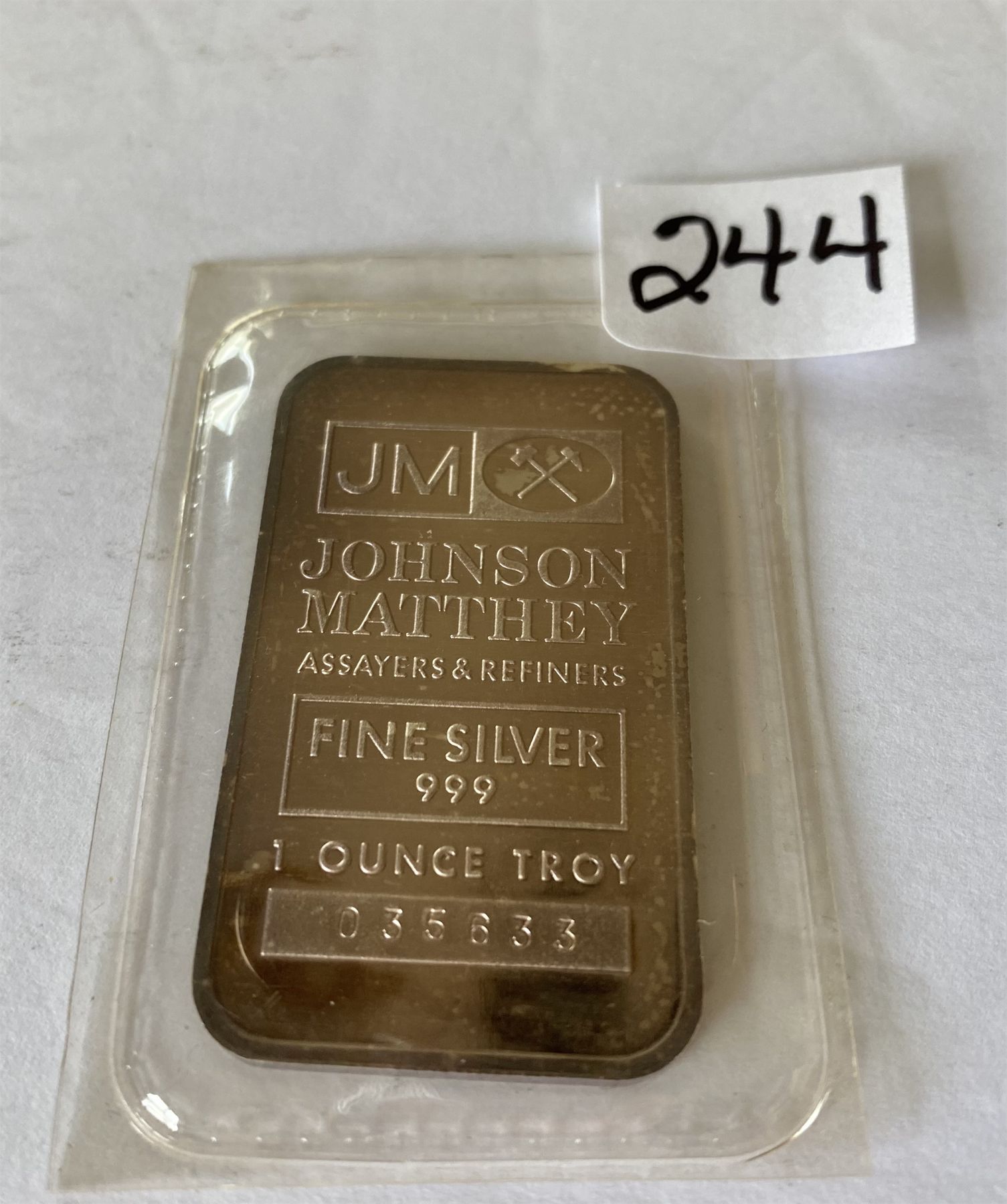 JOHNSON MATTHEY FINE SILVER 999 WAFER BAR - 1 OUNCE TROY - SEALED PKG
