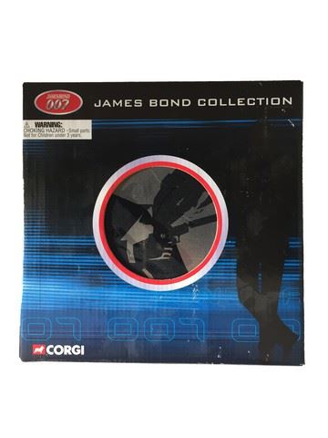 James Bond Film Canister 4 piece gift set by Corgi, 2001. Includes the gadget laden supercars that have played an integral part in the screen success of the world's most famous secret agent: TY95301- Aston Martin DB5, TY95501 BMW Z3, TY95401 Jaguar XKR, and TY95201 Aston Martin Vanquish. Comes in a Bond logo film canister. New in box. Box is in good condition. (9"x9")