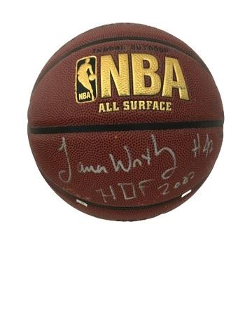 James Worthy autographed Spalding indoor/outdoor NBA all service orange leather basketball. Signed: “James Worthy #42 HOF 2003” in silver marker. James Ager Worthy (born February 27, 1961) is an American former professional basketball player. Nicknamed "Big Game James", he played his entire professional career with the Los Angeles Lakers in the National Basketball Association (NBA). Worthy was a seven-time NBA All-Star, a two-time All-NBA Team member who won three NBA championships and was voted the NBA Finals MVP in 1988. He was named to both the NBA's 50th and 75th anniversary teams.