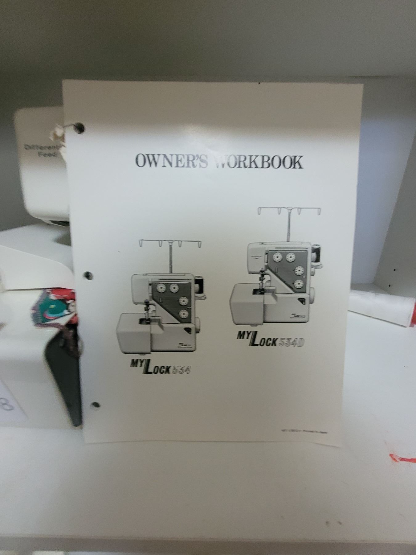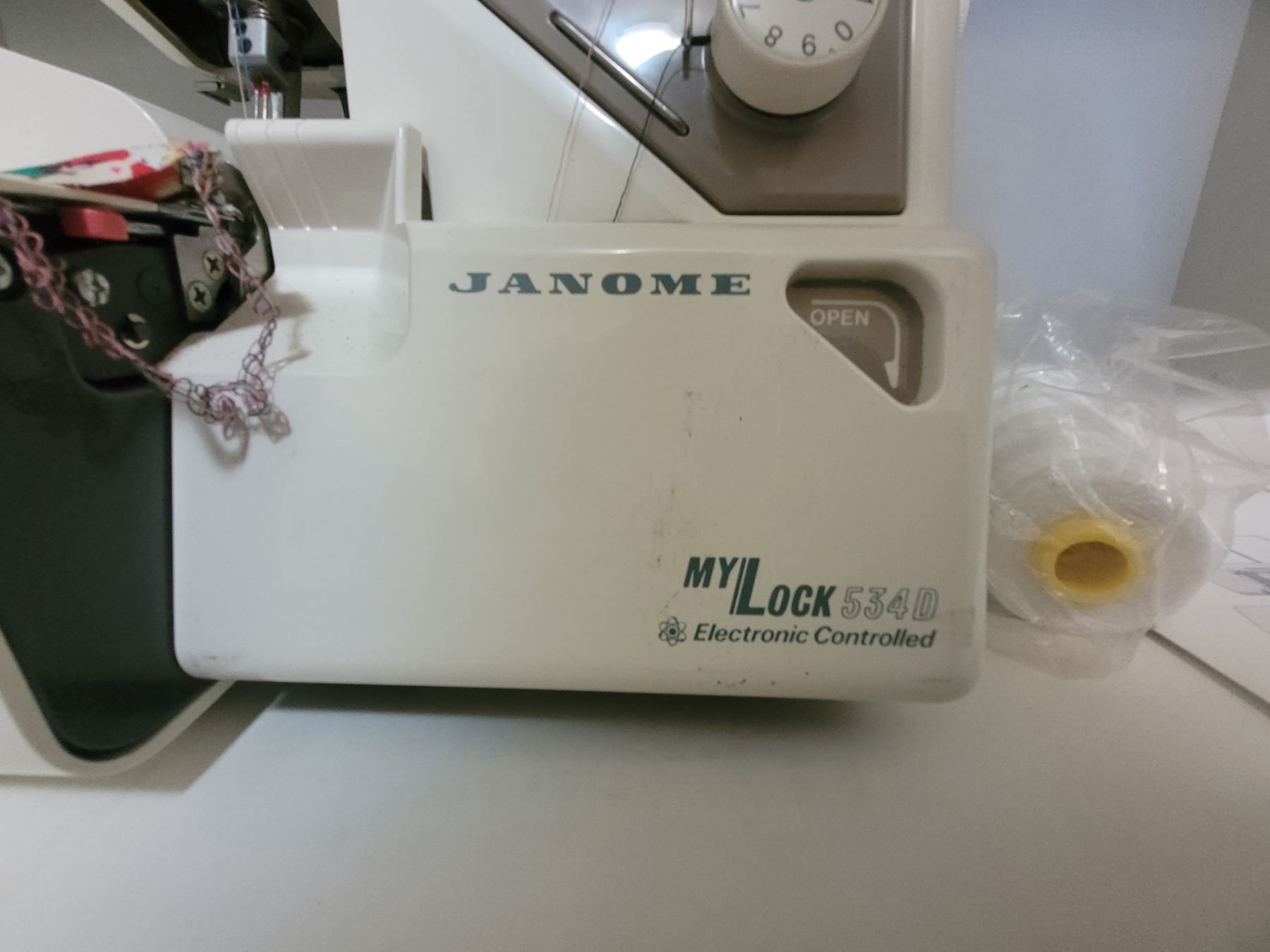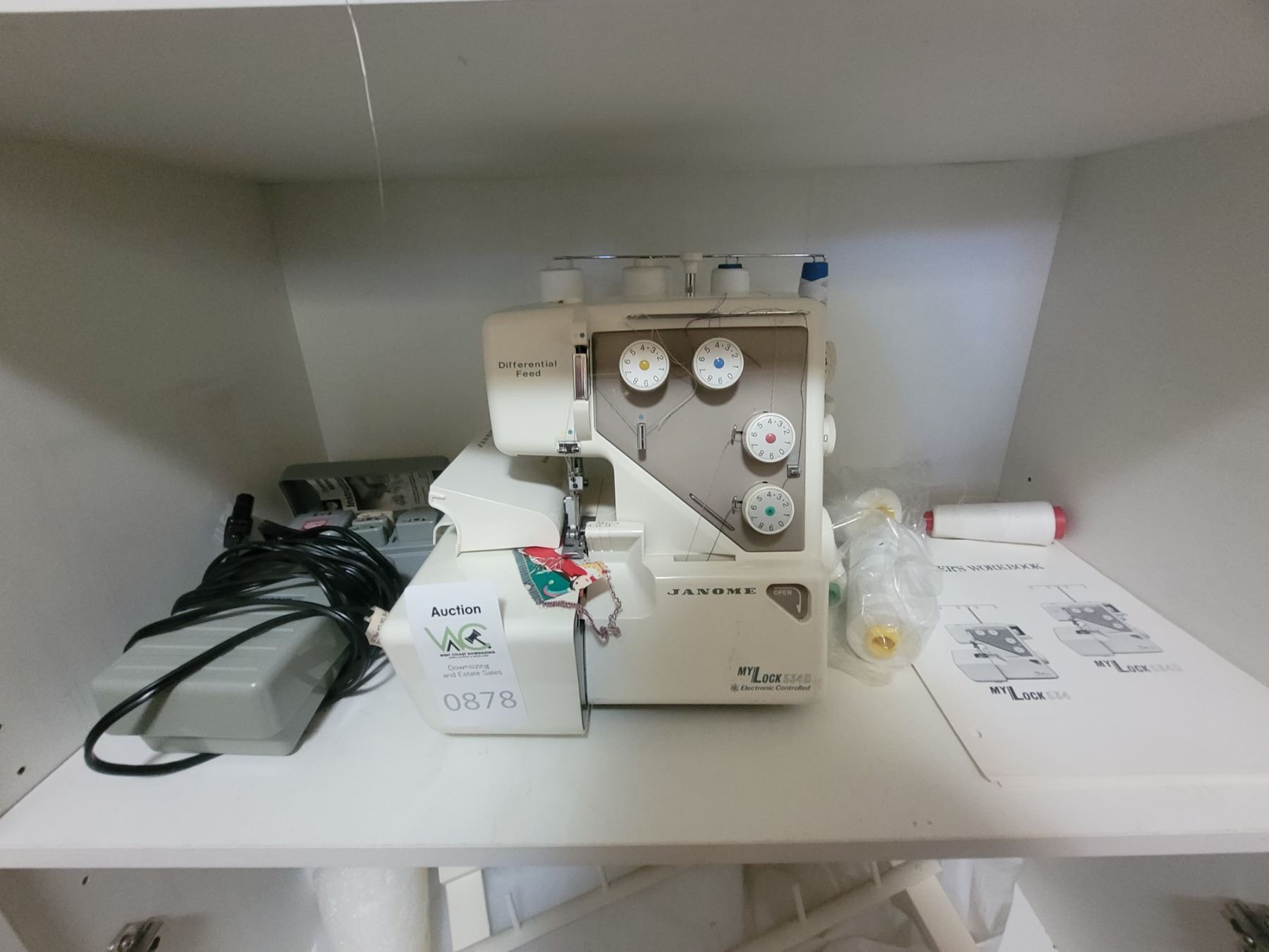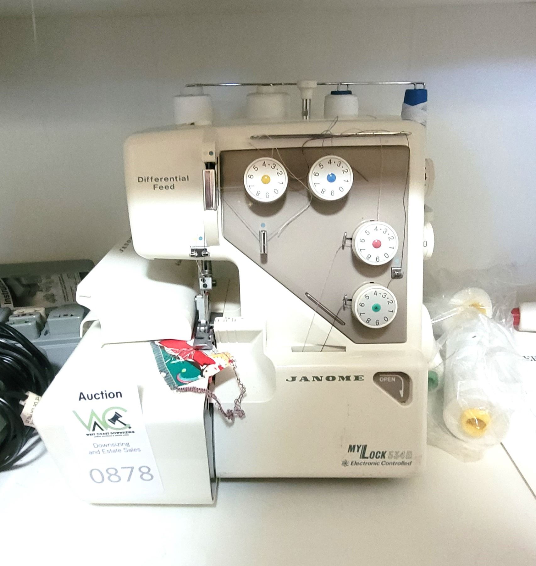 Janome My Lock 534D assortment of fabric and notions. Pickup at 9 am