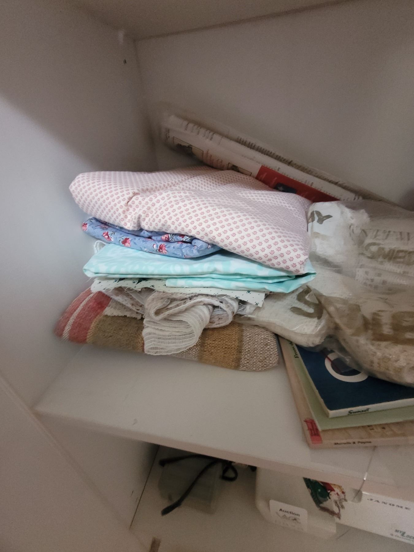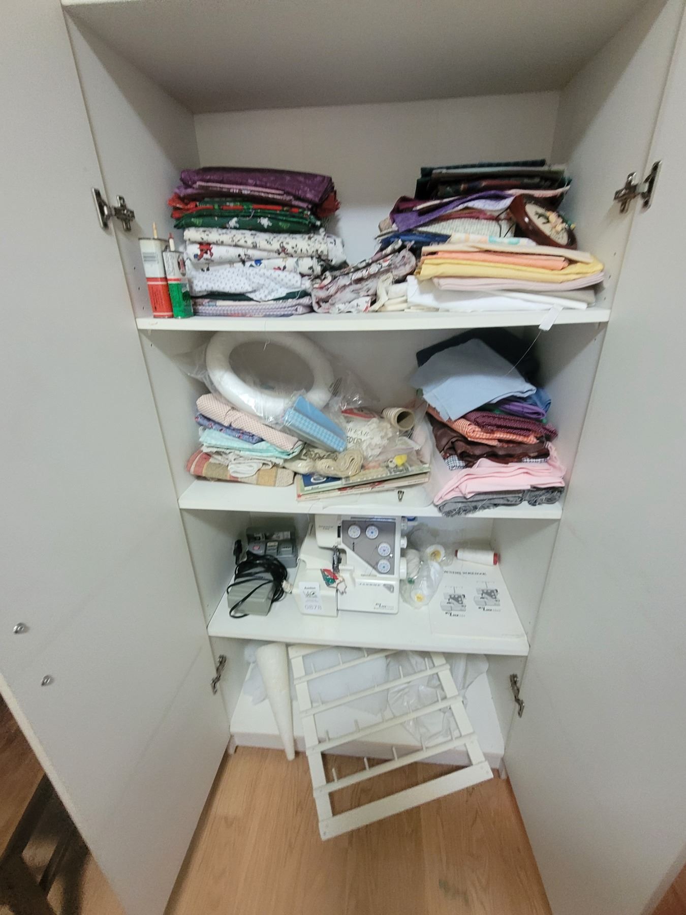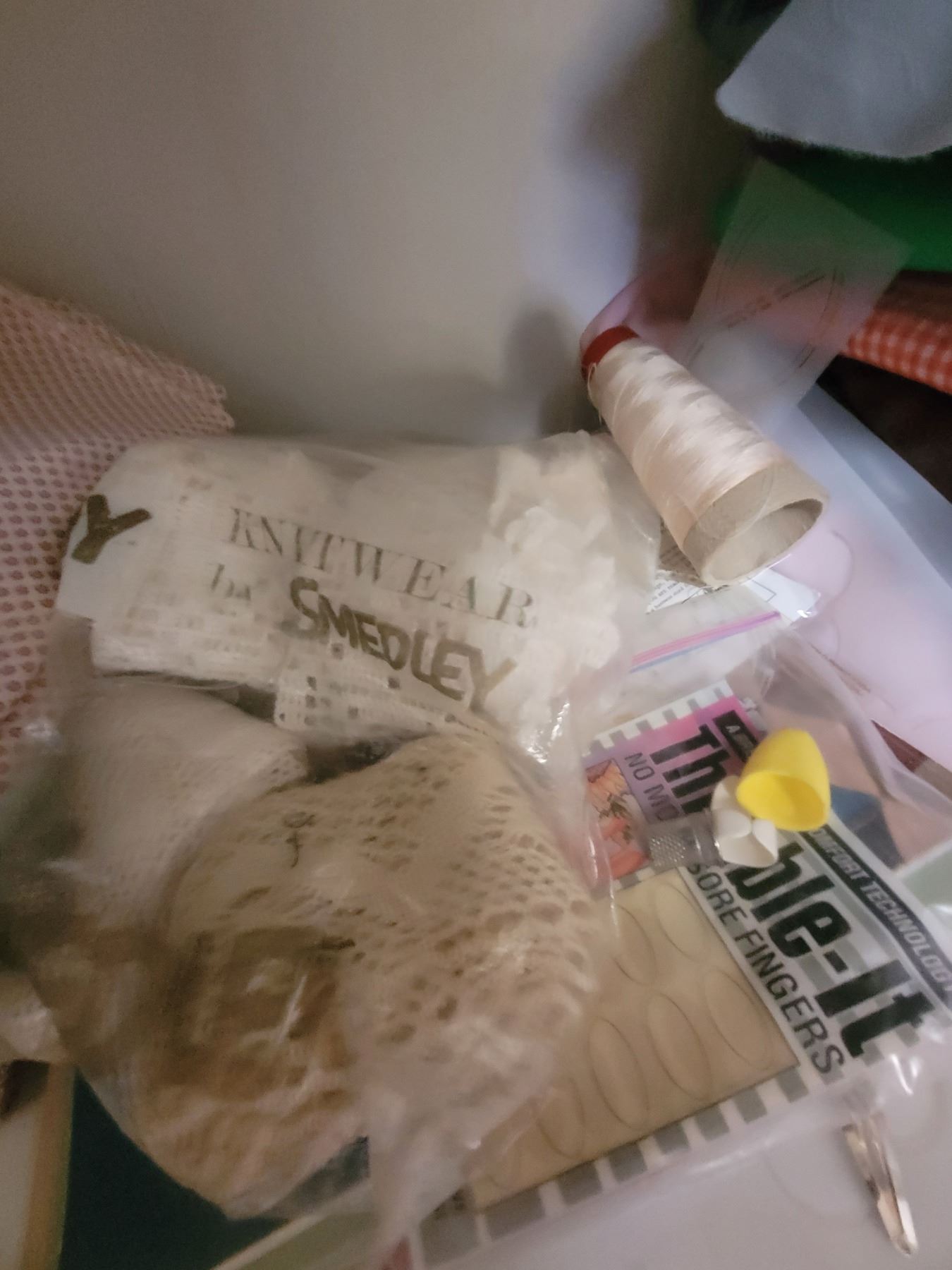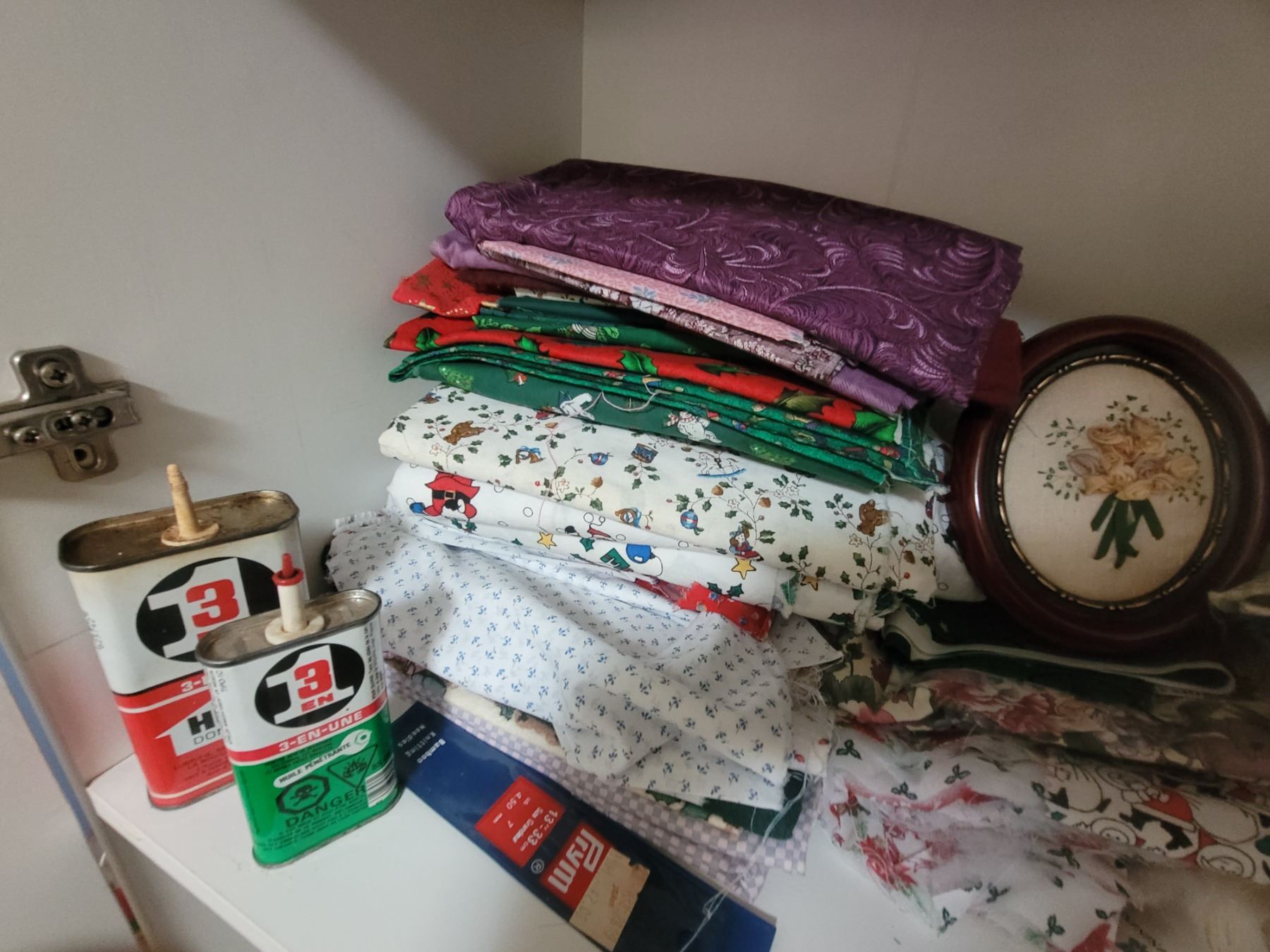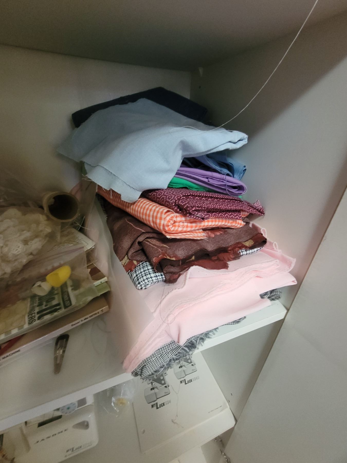 Janome My Lock 534D assortment of fabric and notions. Pickup at 9 am