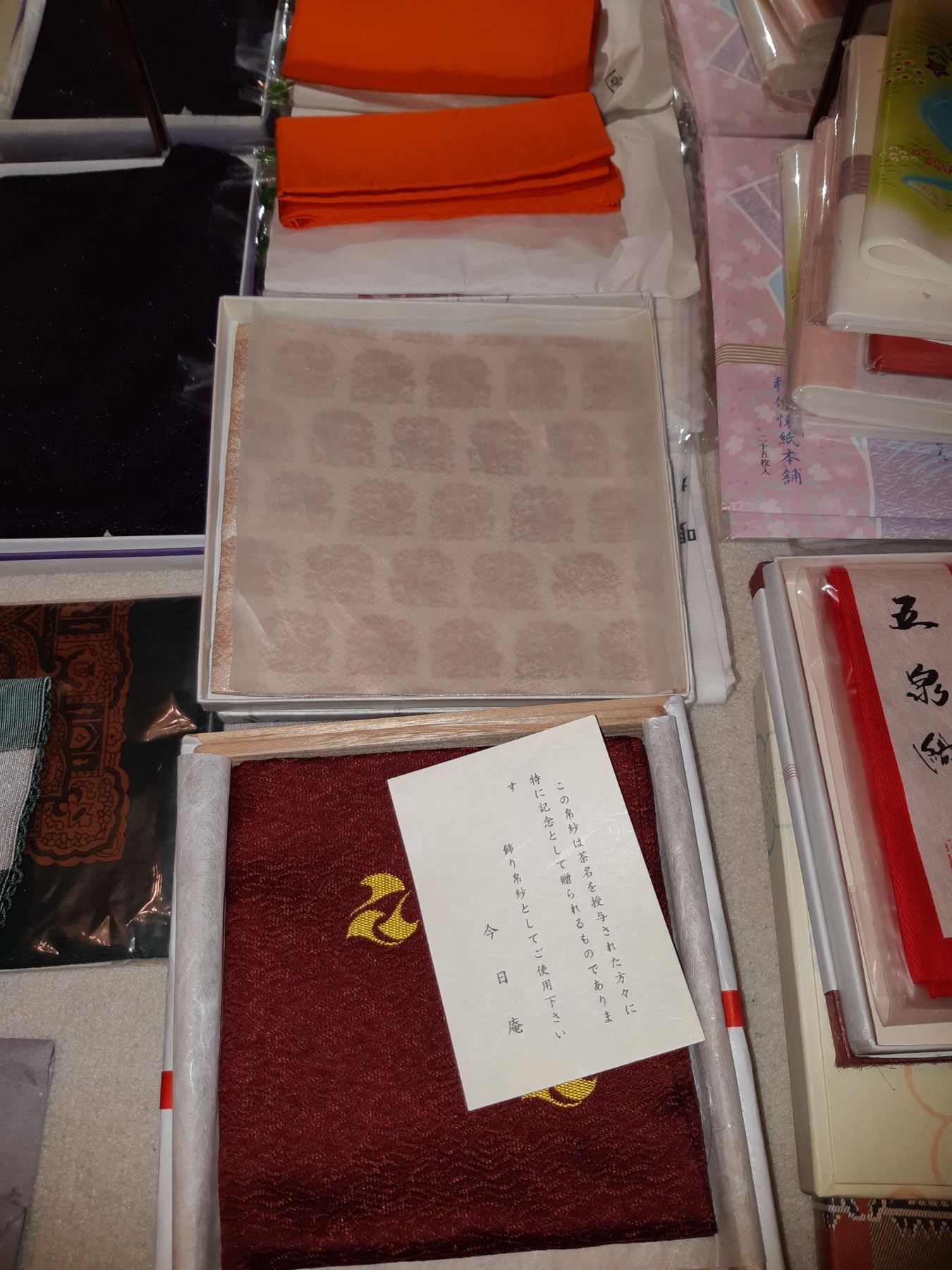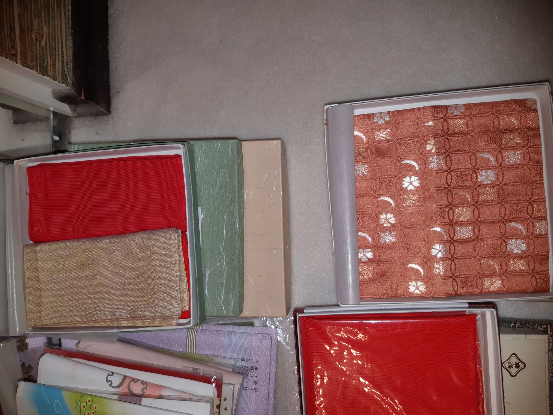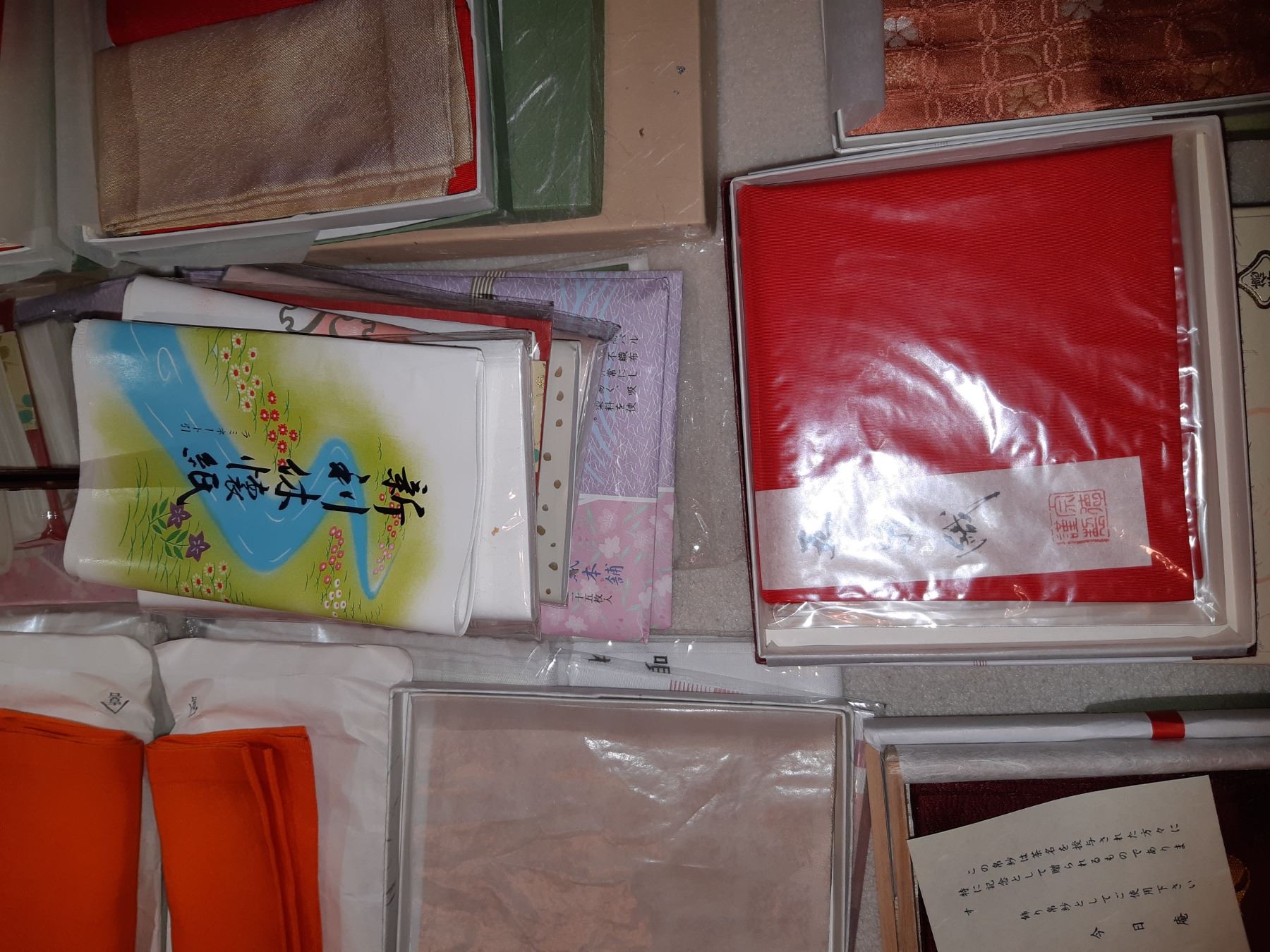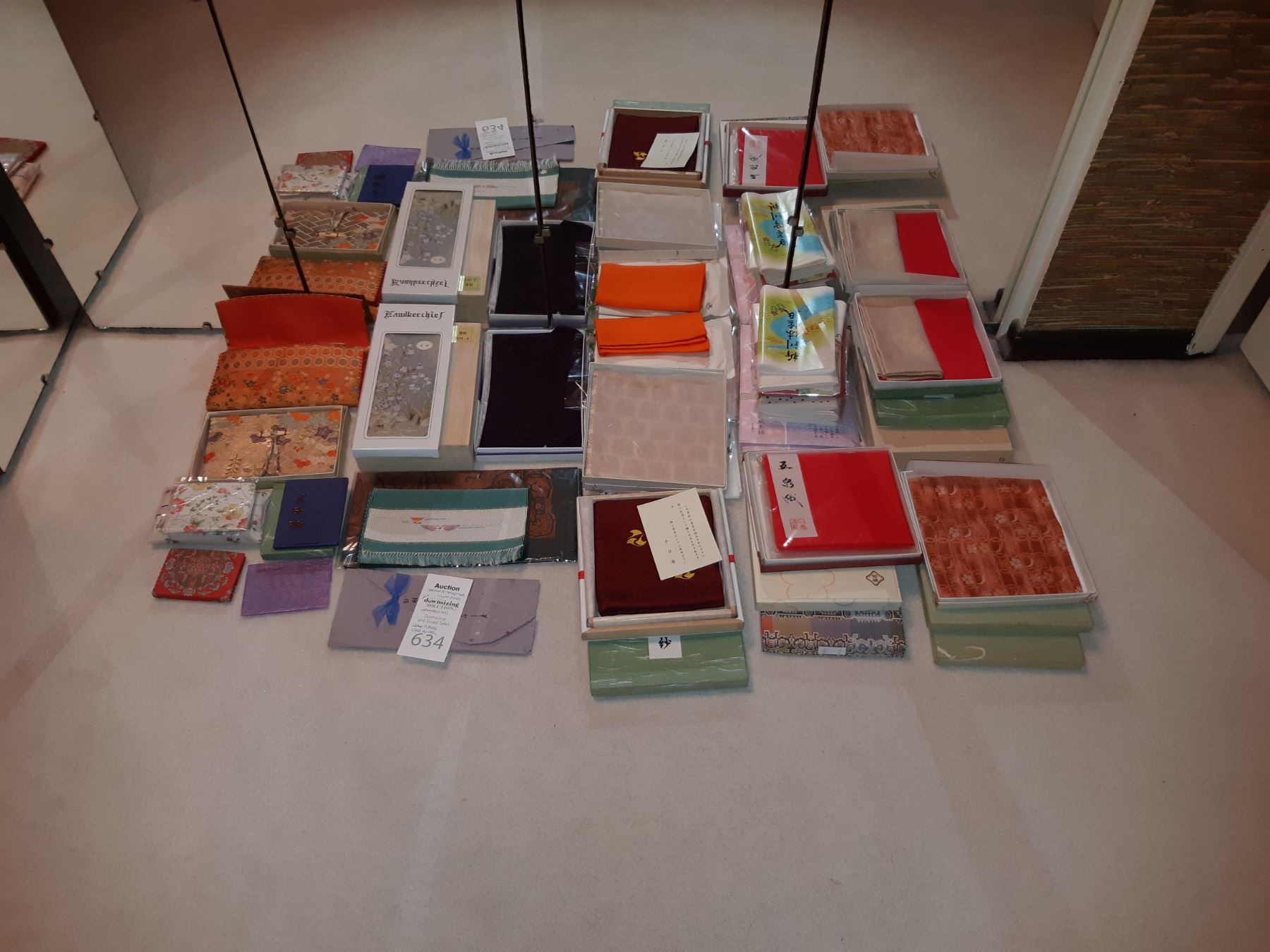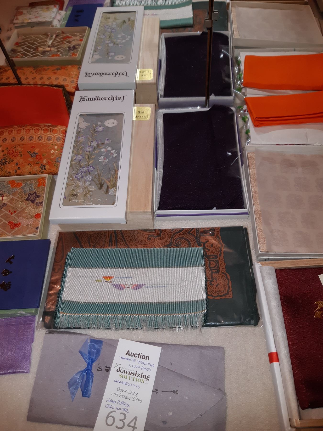 Large assortment of napkins & handkerchiefs for tea ceremony in various fabrics. Bring packing supplies and pickup at 9 am
