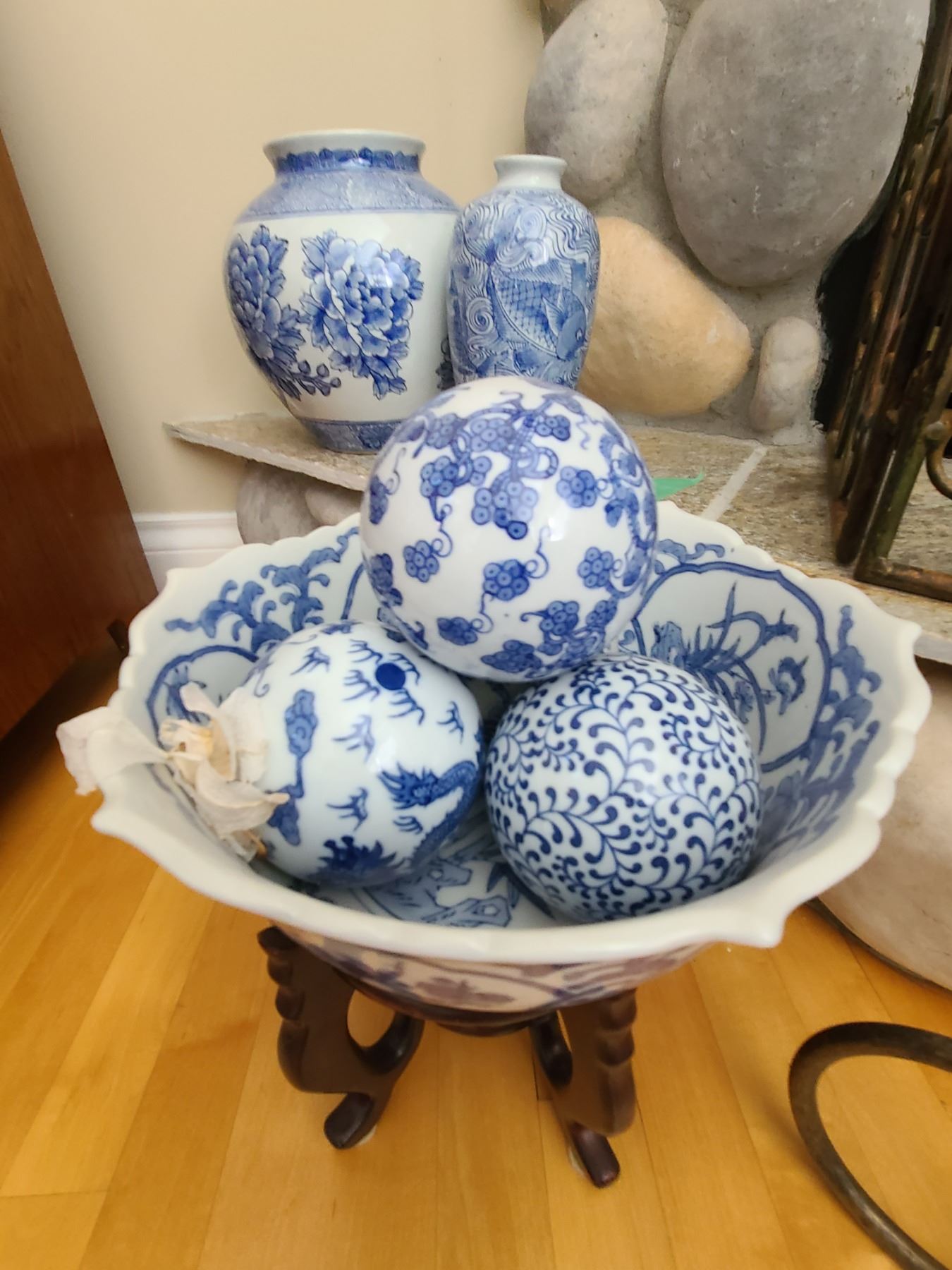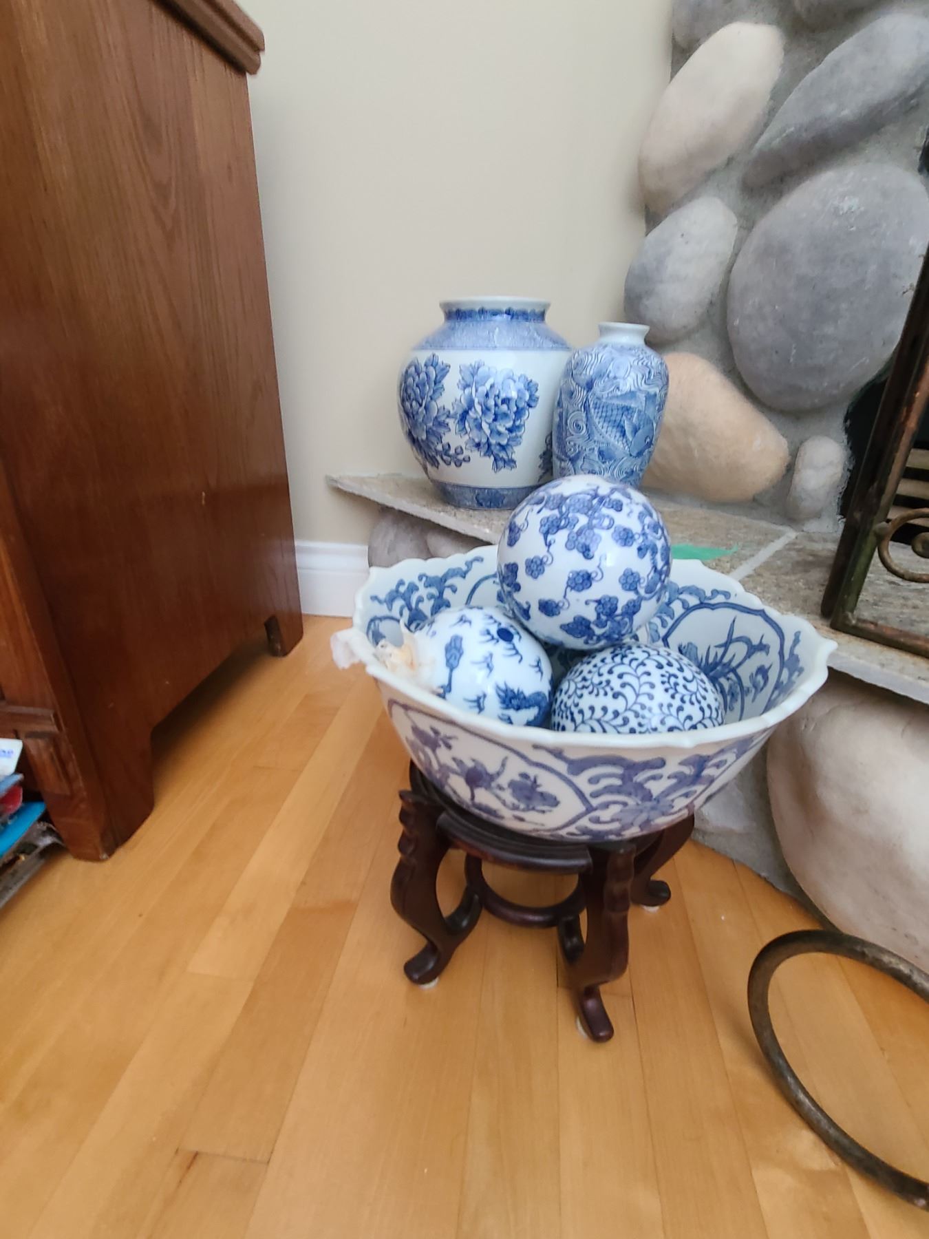 Lot includes jars and bowl of balls on wood stand. Pickup 9 am.
