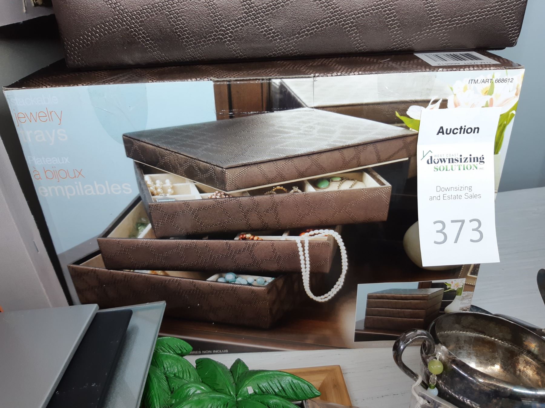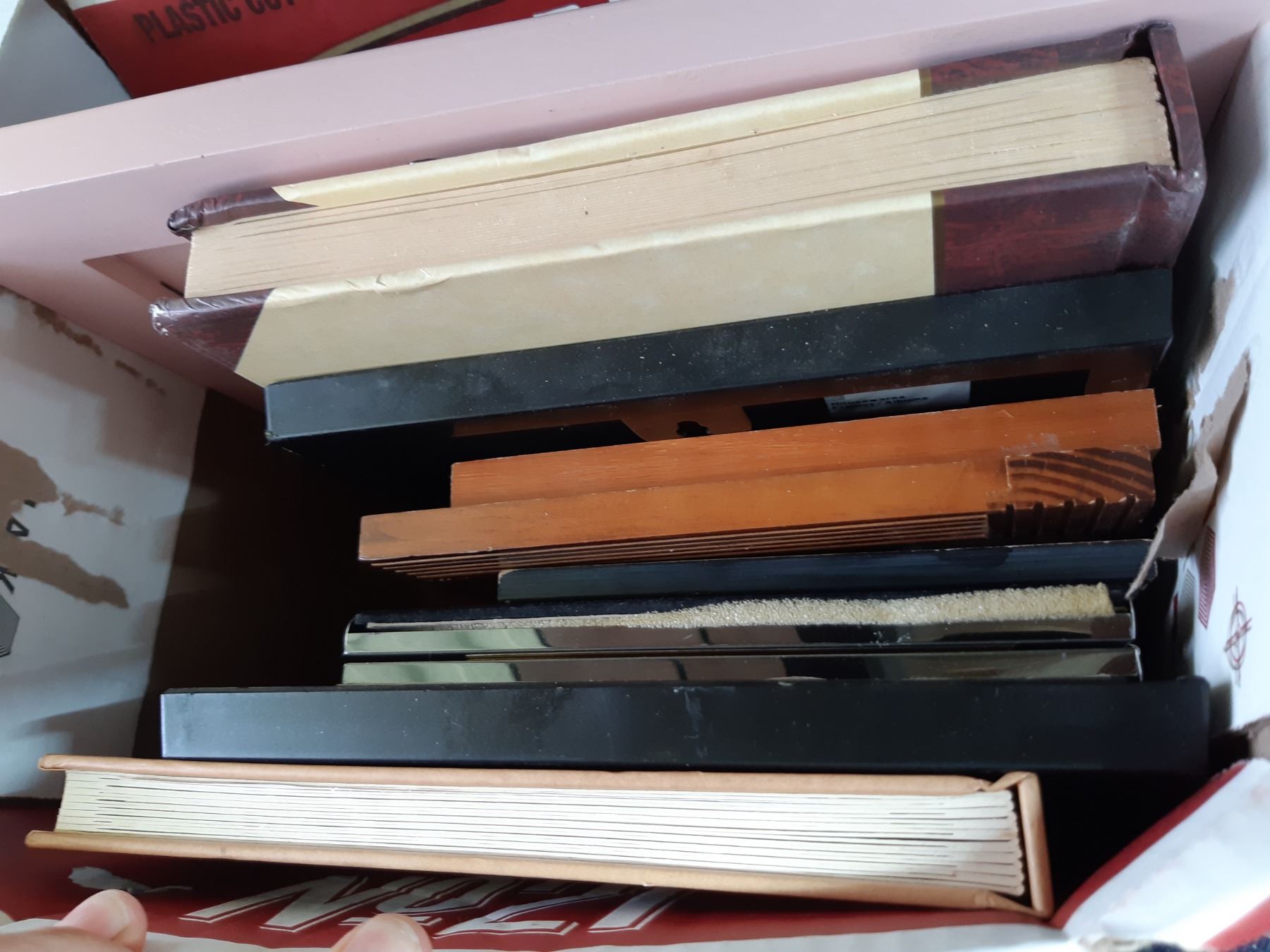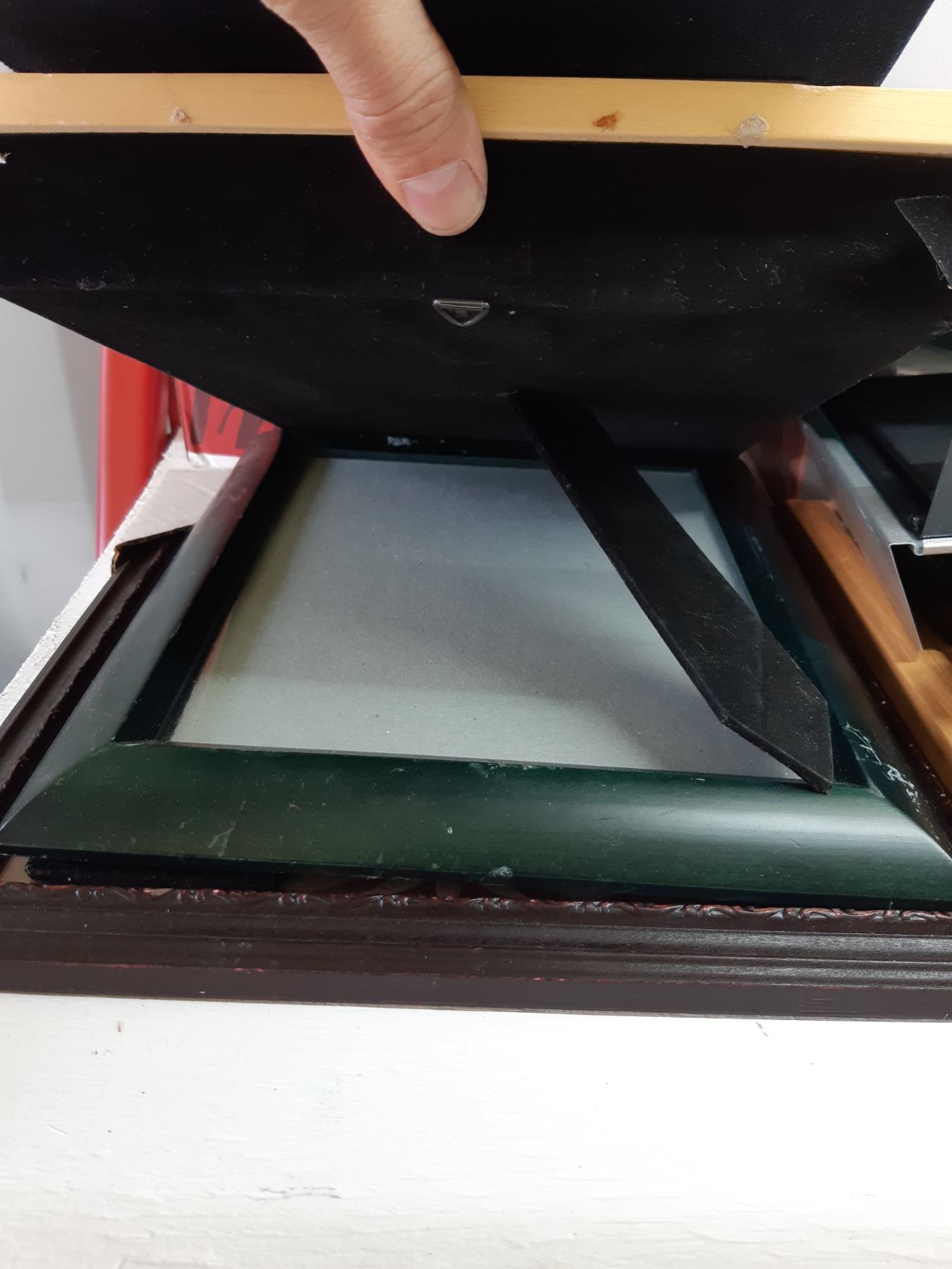 Jewely box with trays, new in box. Assortment of various size picture frames Bring packing supplies and pickup at 10 am