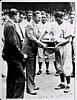7" x 9" black and white wire photo of HOFer Jimmie Foxx receiving the 1932 American League MVP award, signed in black fountain pen on the front by Foxx. Wire stamp on the back, photo is in EXMT condition with light corner wear, signature grades a 6. Accompanied by a LOA from JSA.