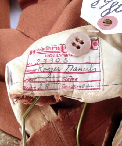 Acquired by the award winning costume department of Western Costume from the early drama Junior G-Men (1940) is Midge's (Roger Daniel) light brown with cloth striping pants. The Western Costume Company tag is present on the inside of the waist of the pants.